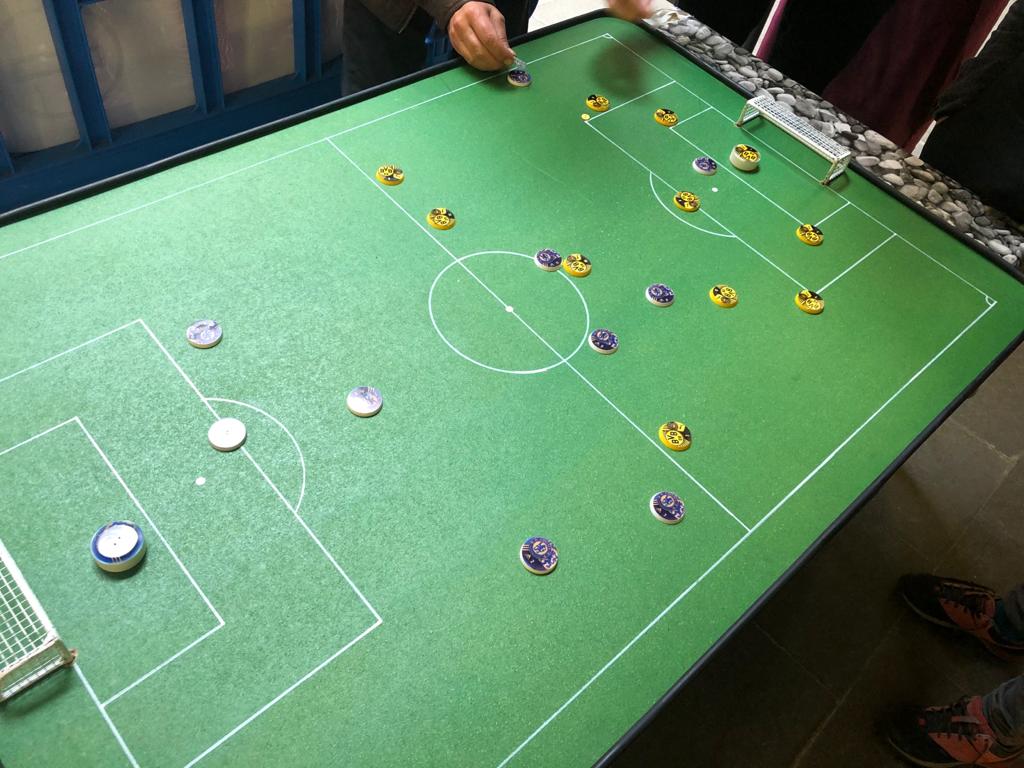 L’Enric Albaladejo, Director de Button Maker BCN, (segur que molts alumnes el coneixeu perquè està a la Pl. del Diamant) ha donat a l’escola un joc complet de Futbol de Botons. Ha vingut a lliurar-lo i ens ha ensenyat la Normativa del joc. També ha fixat les porteries amb silicona per tal que siguin ben segures!
