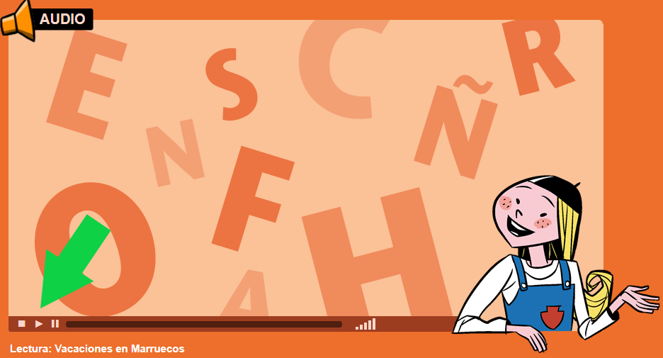 Aquí tenéis el audio para el dictado. Pulsar la tecla “PLAY” señalada con la flecha verde cuando estéis preparados.