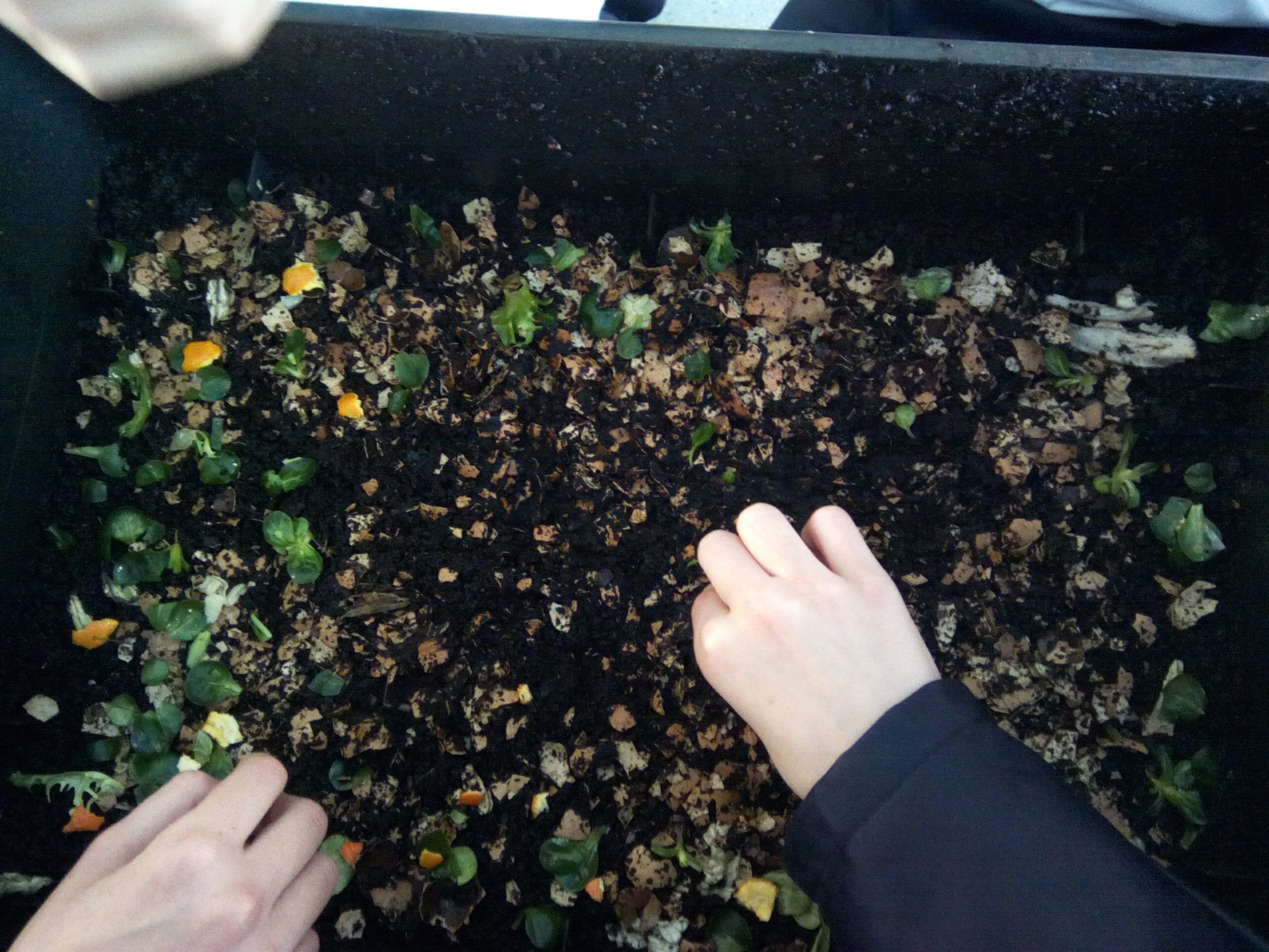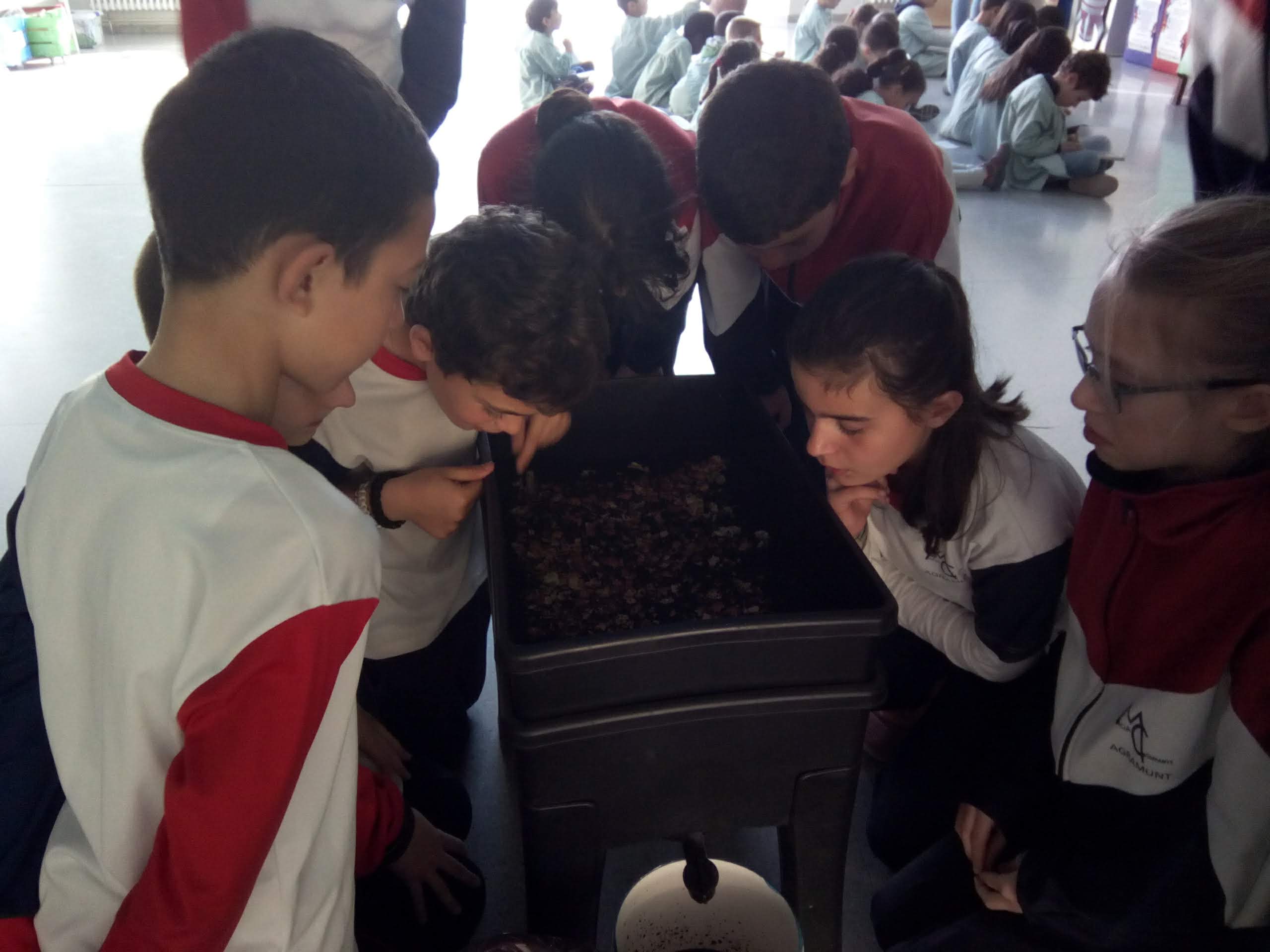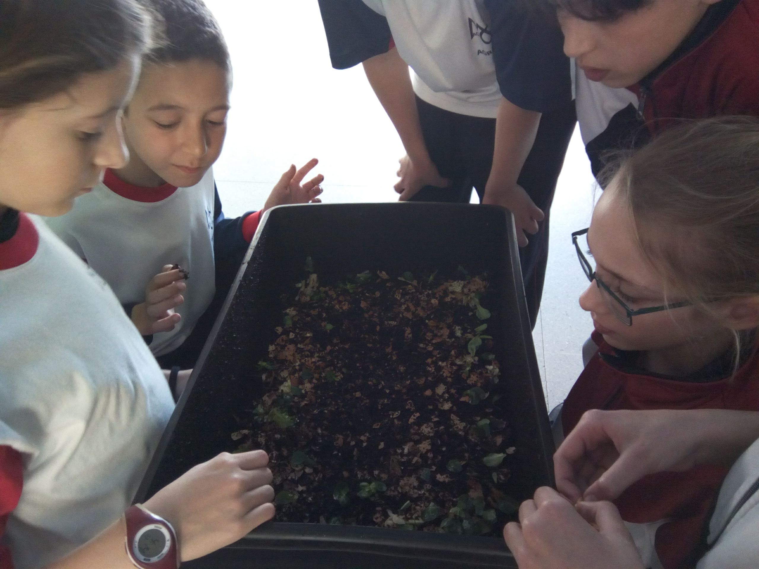 Aquesta setmana ens ha tocat a la classe de 5èA anar a donar de menjar als cucs. Per tal de no molestar-los gaire amb el soroll i poder participar tots, hi hem anat la meitat del grup.