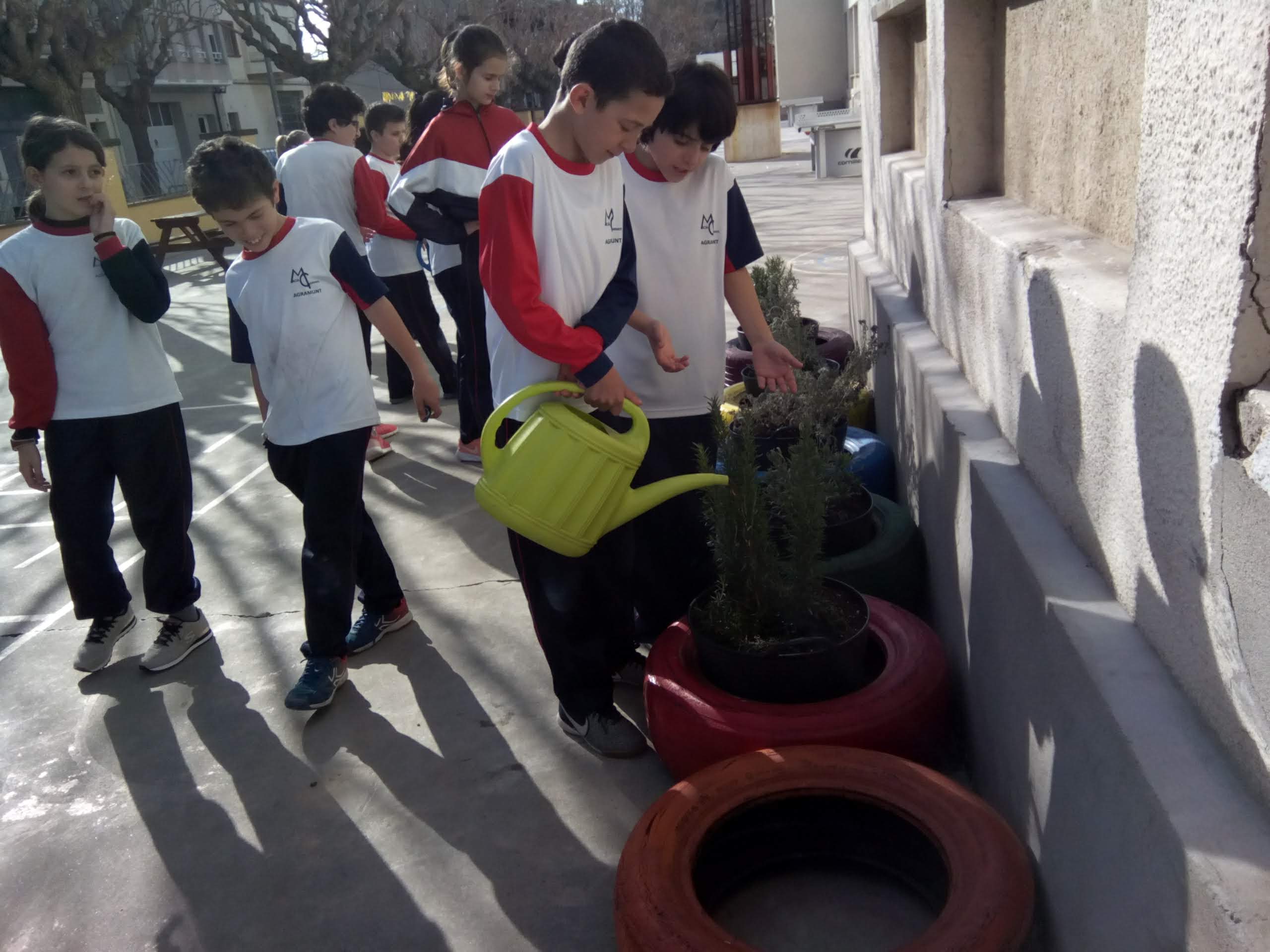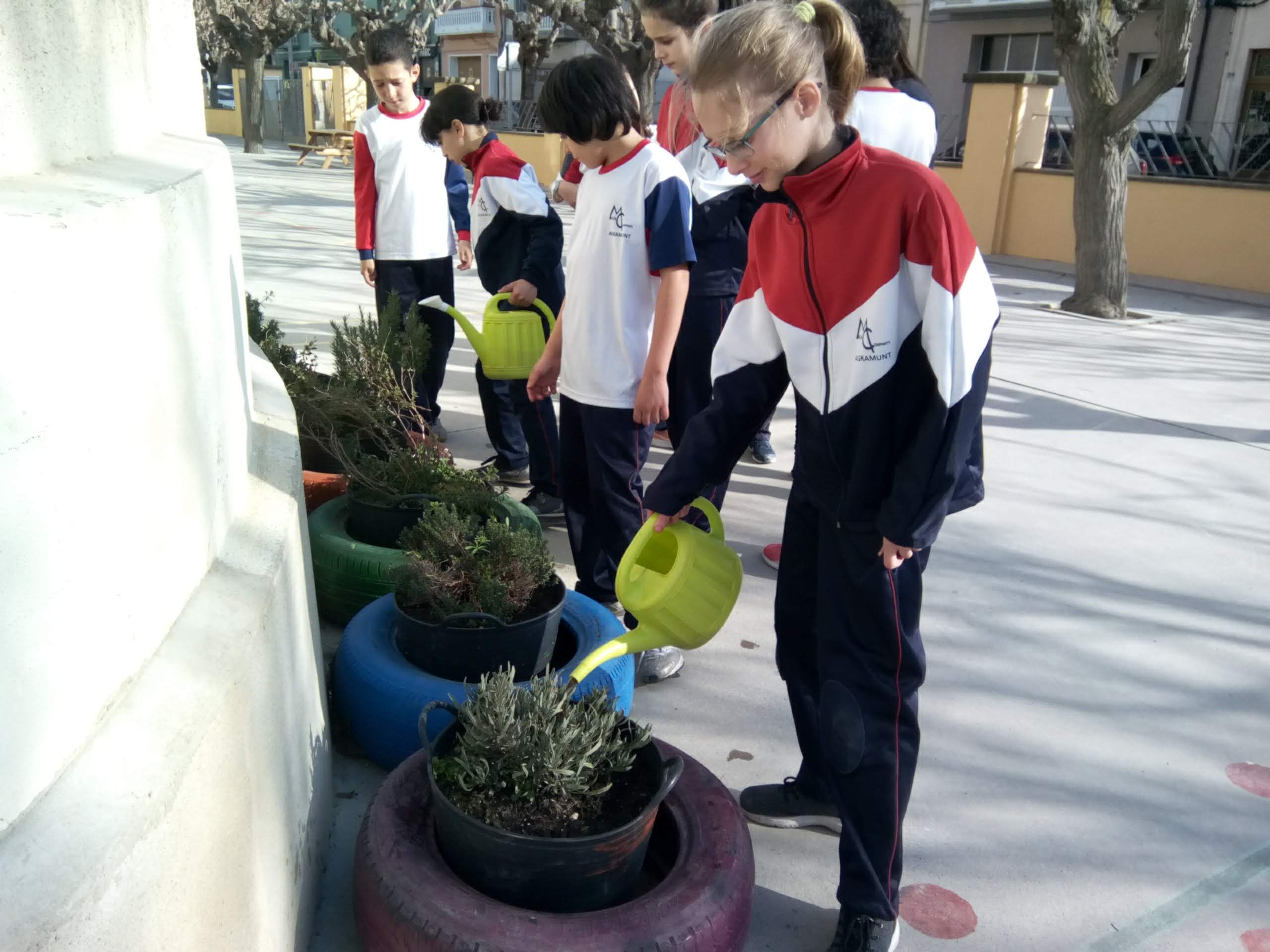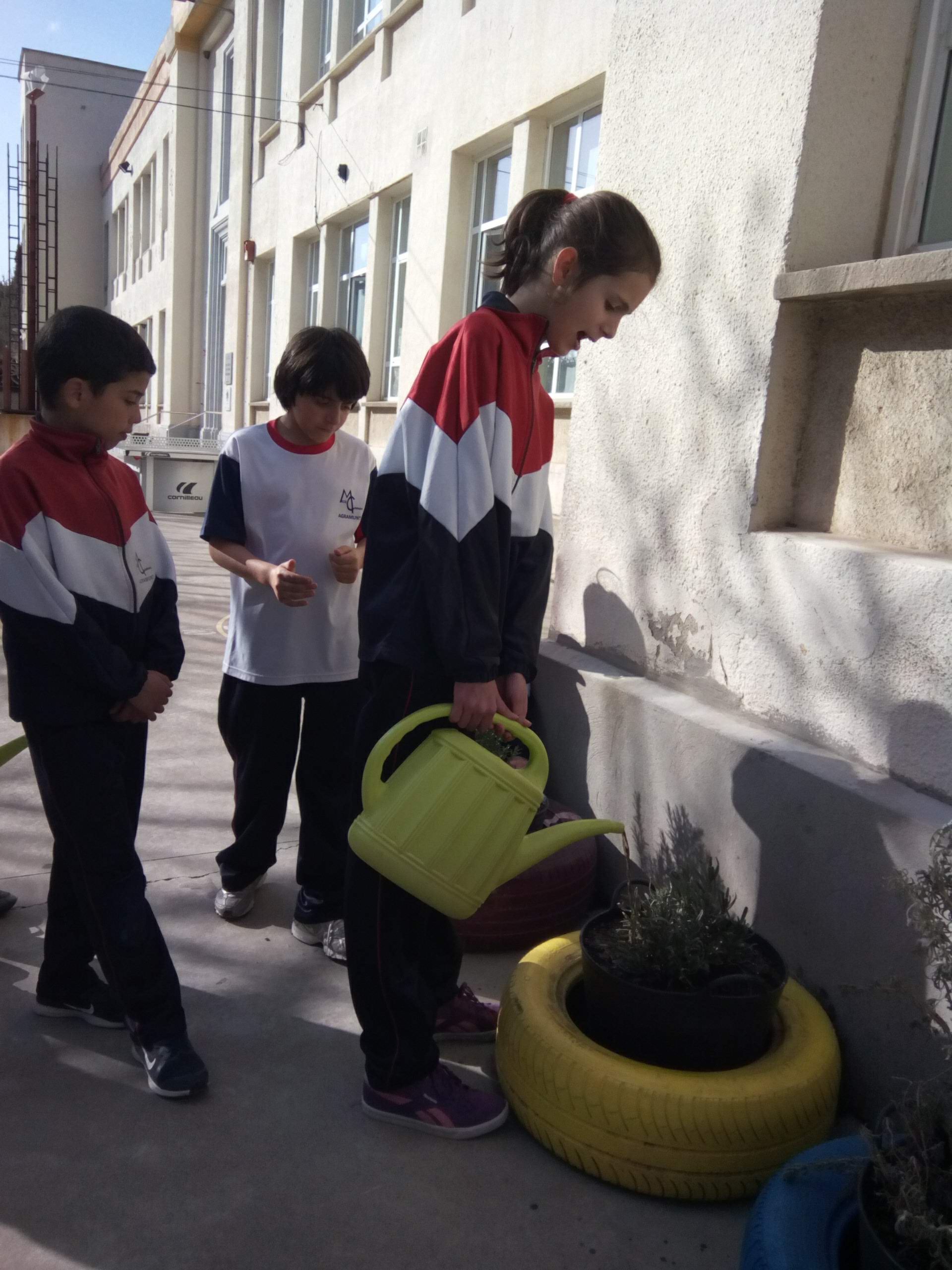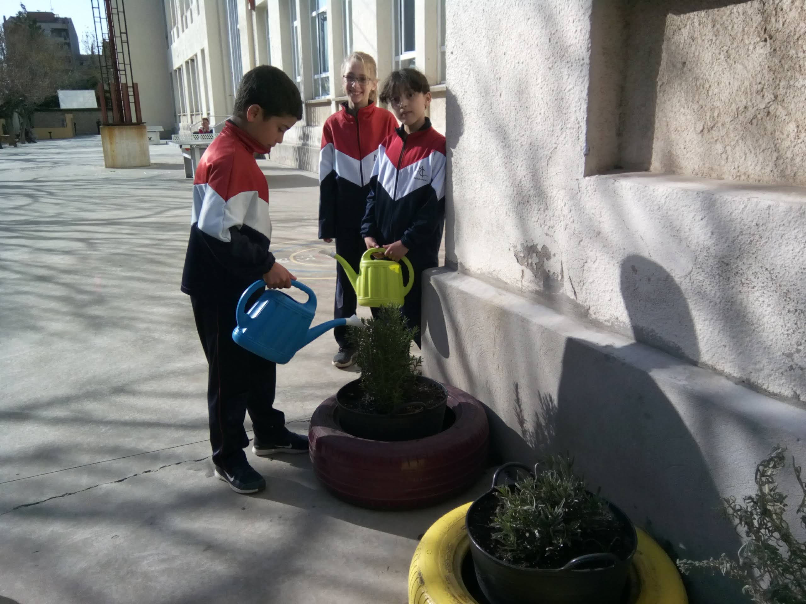 A continuació, hem agafat l’adob del vermicompostador i afegint-hi aigua hem anat a regar les plantes aromàtiques de l’exterior de l’escola.