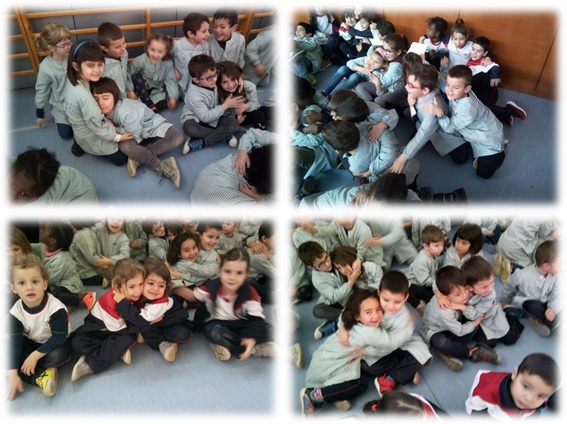 En un primer moment la Teresa Bohils, directora de l’escola, ens va donar la benvinguda i va donar pas al visionat d’un petit curtmetratge sobre la violència on el protagonista troba la solució de reduir-la donant abraçades. Per això, al finalitzar ens vam animar a donar-nos una forta abraçada.