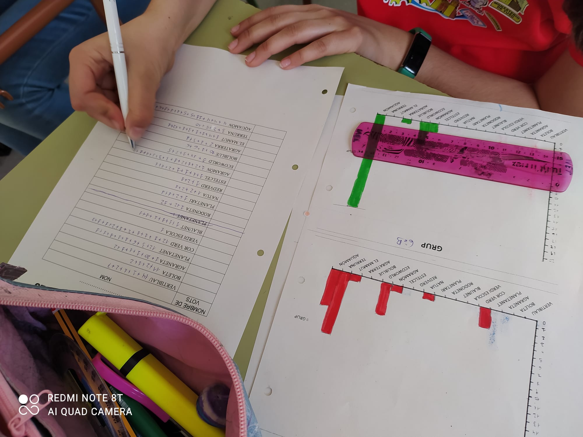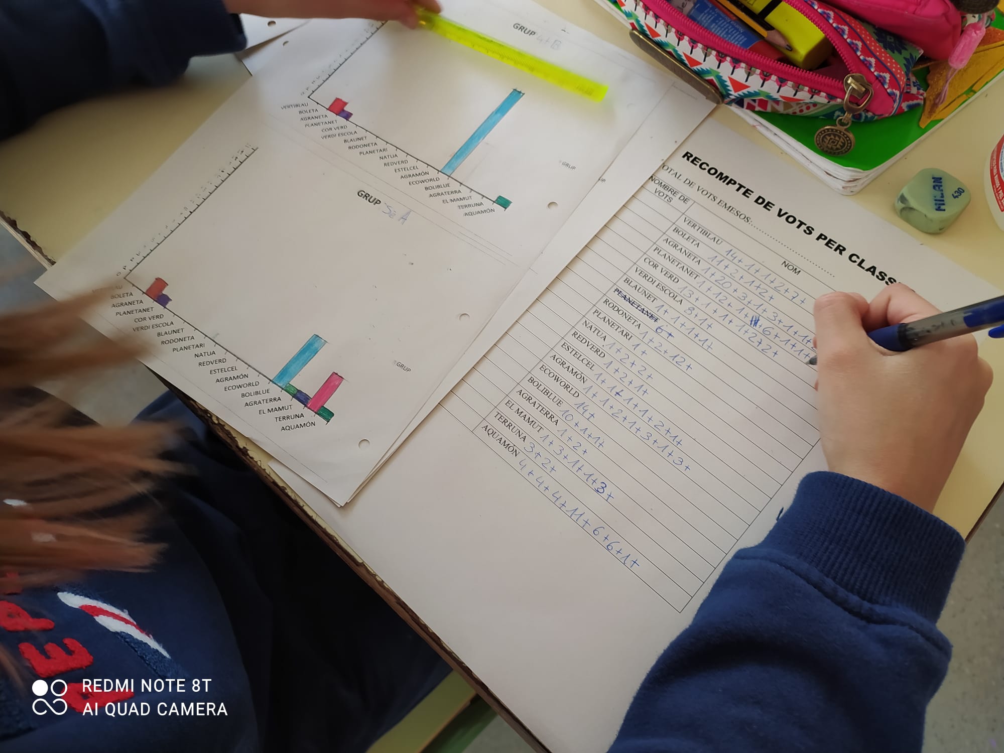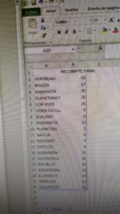Després de fer el recompte de vots amb l’alumnat de sisè, classe per classe, fent les gràfiques per representar els resultats de cada una, buscar i treballar els percentatges %… utilitzar la calculadora i passar una mica de nervis… JA TENIM ELS RESULTATS DEL PROCÉS PARTICIPATIU DE L’ESCOLA MACIÀ-COMPANYS!!!