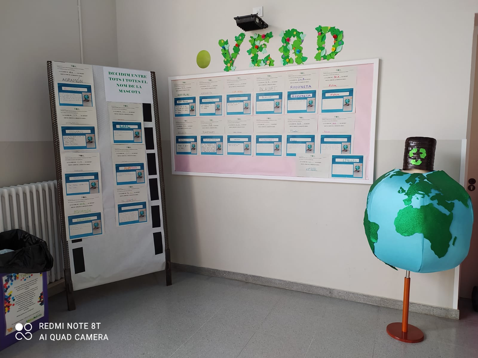 Aquest curs des de la comissió d’Escoles Verdes vam decidir tirar endavant l’elecció del nom de la nostra mascota d’EV. Des de fa uns cursos, els/les alumnes de l’escola van participar en un concurs per dissenyar-la. Un alumne de l’escola amb el seu disseny de Terra va ser el guanyador. Després de varis intents per construir-la, finalment vam encertar en el seu disseny i ens va agradar molt com va quedar. Només faltava posar-li nom.