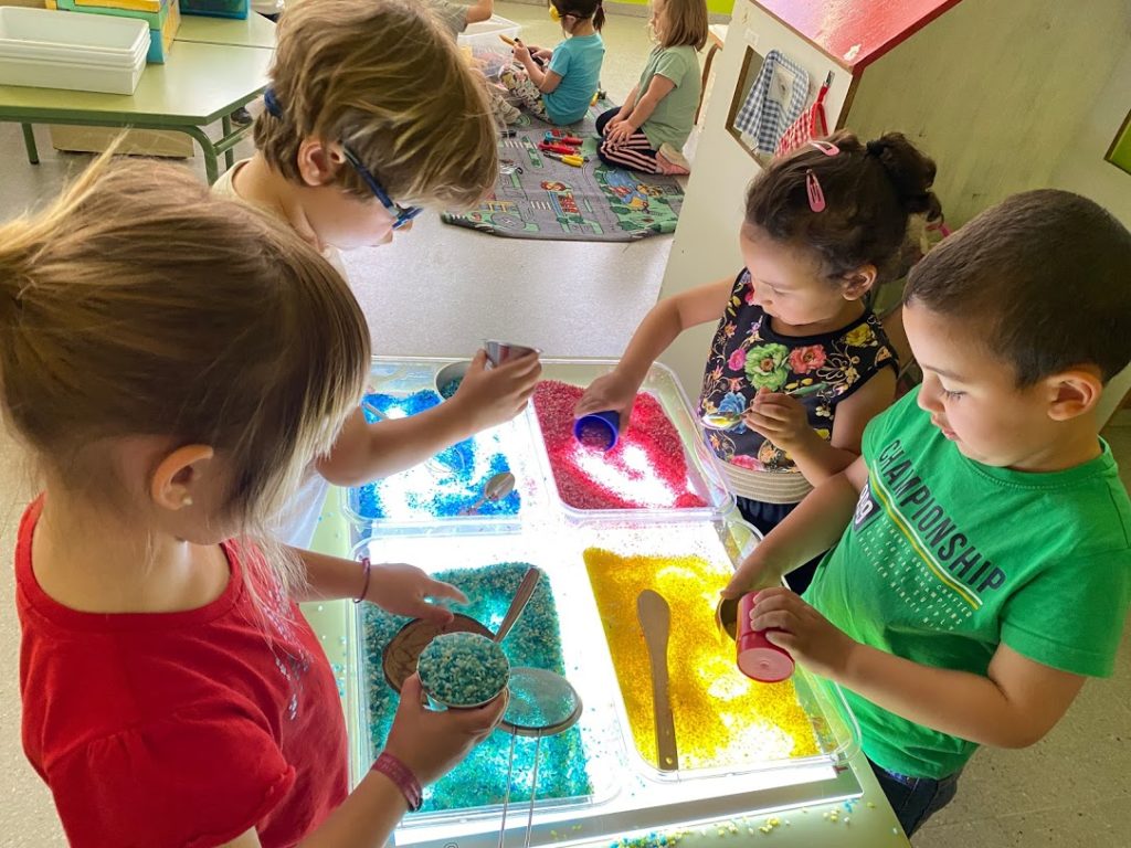 A les sessions d’experimentació hem dut a terme una activitat sensorial que ha consistit en tenyir arròs de diferents colors amb colorant alimentari.