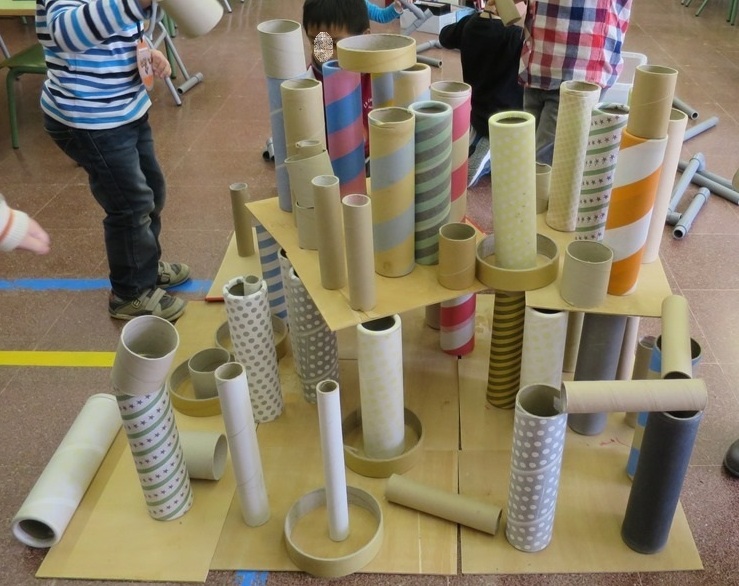 CONSTRUCCIONS AMB VOLUMS. Amb esferes, prismes i cilindres jugarem a fer construccions: castells, cases, camions,…