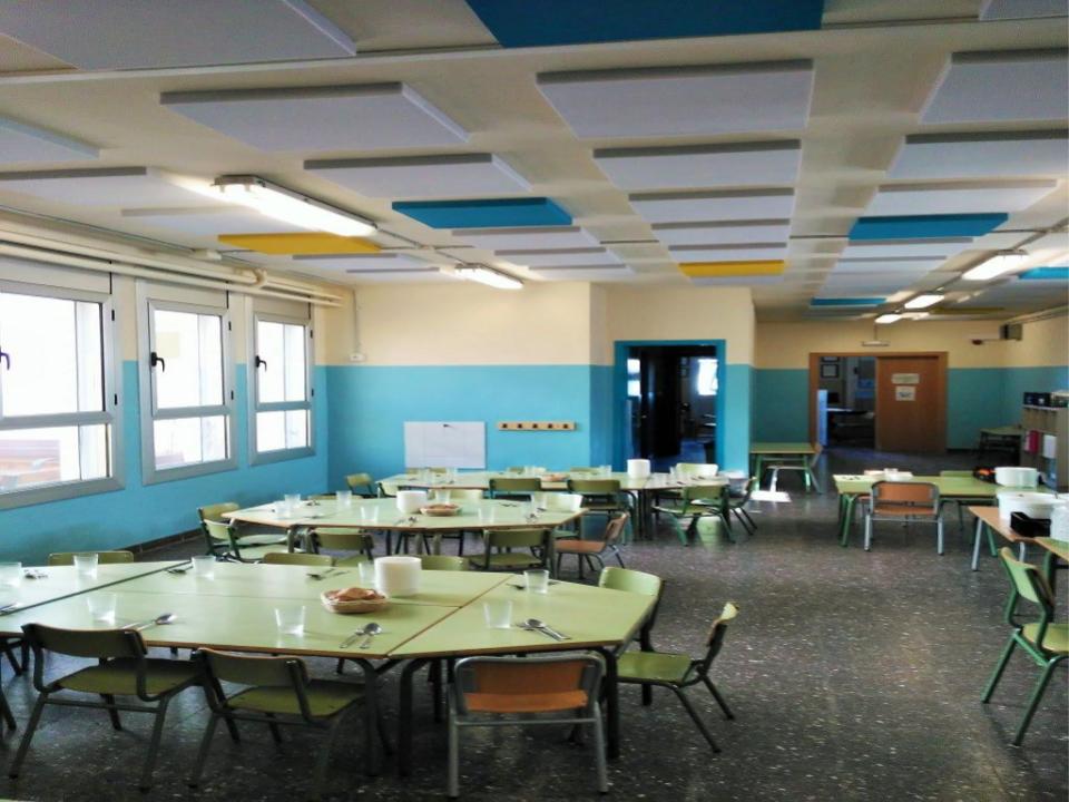 L’escola disposa des de fa uns anys de cuina pròpia i d’un menjador per fins a 120 alumnes repartits en dos torns.