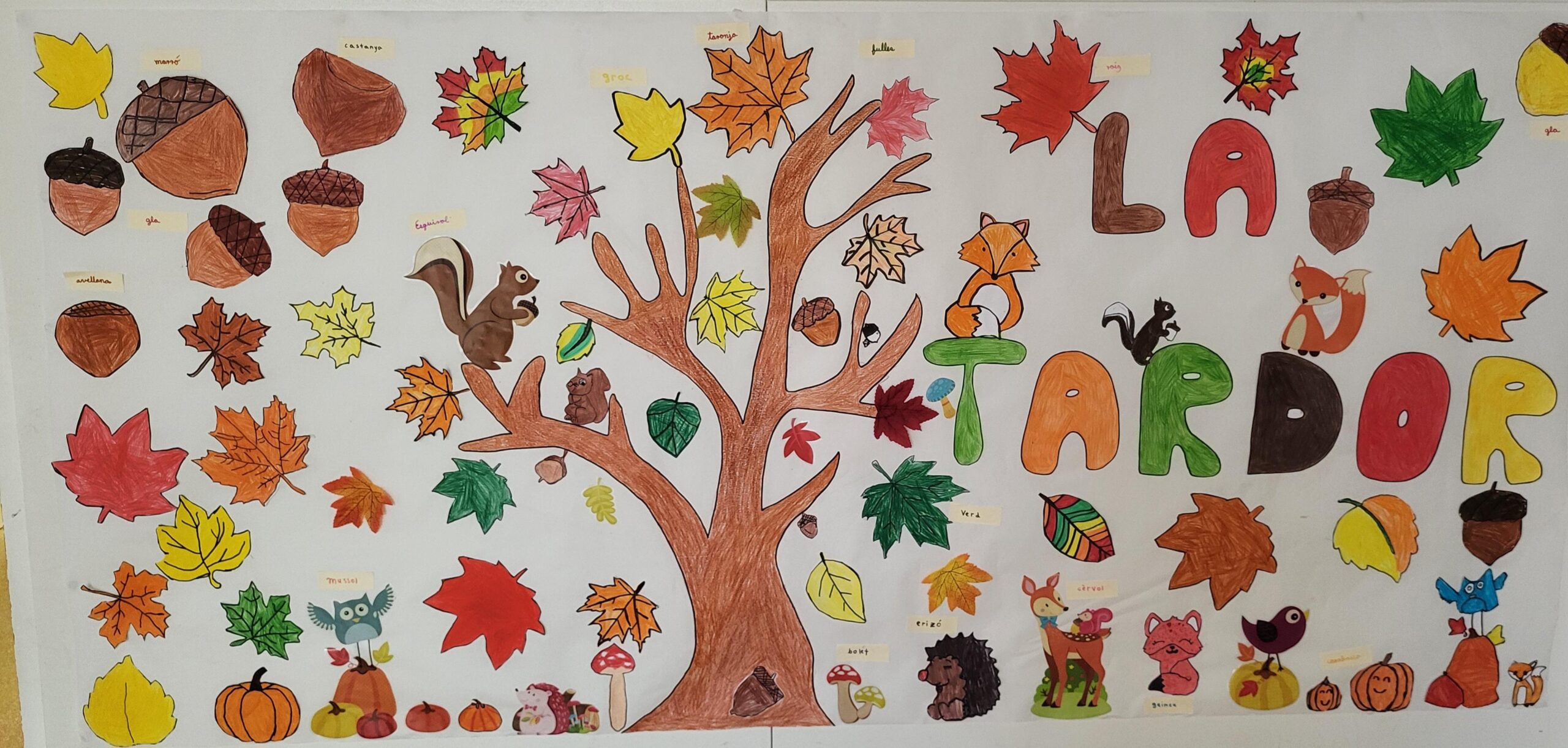 Per posar-ho en pràctica, hem elaborat un mural col·lectiu ple de colors de la tardor, amb fulles, fruits i dibuixos que hem fet entre tots. D’aquesta manera, no només hem après noves paraules, sinó que també hem compartit moments de creativitat i cooperació.