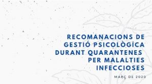 GUIA DE GESTIÓ PSICOLÒGICA DAVANT QUARANTENES PER MALALTIES INFECCIOSES Feu un comentari / Per admin / 6 d'abril de 2020 / Articles importants ESCOLA Famílies General Portada ÚLTIMES NOTÍCIES Cliqueu a sobre la imatge per poder visualitzar la guia
