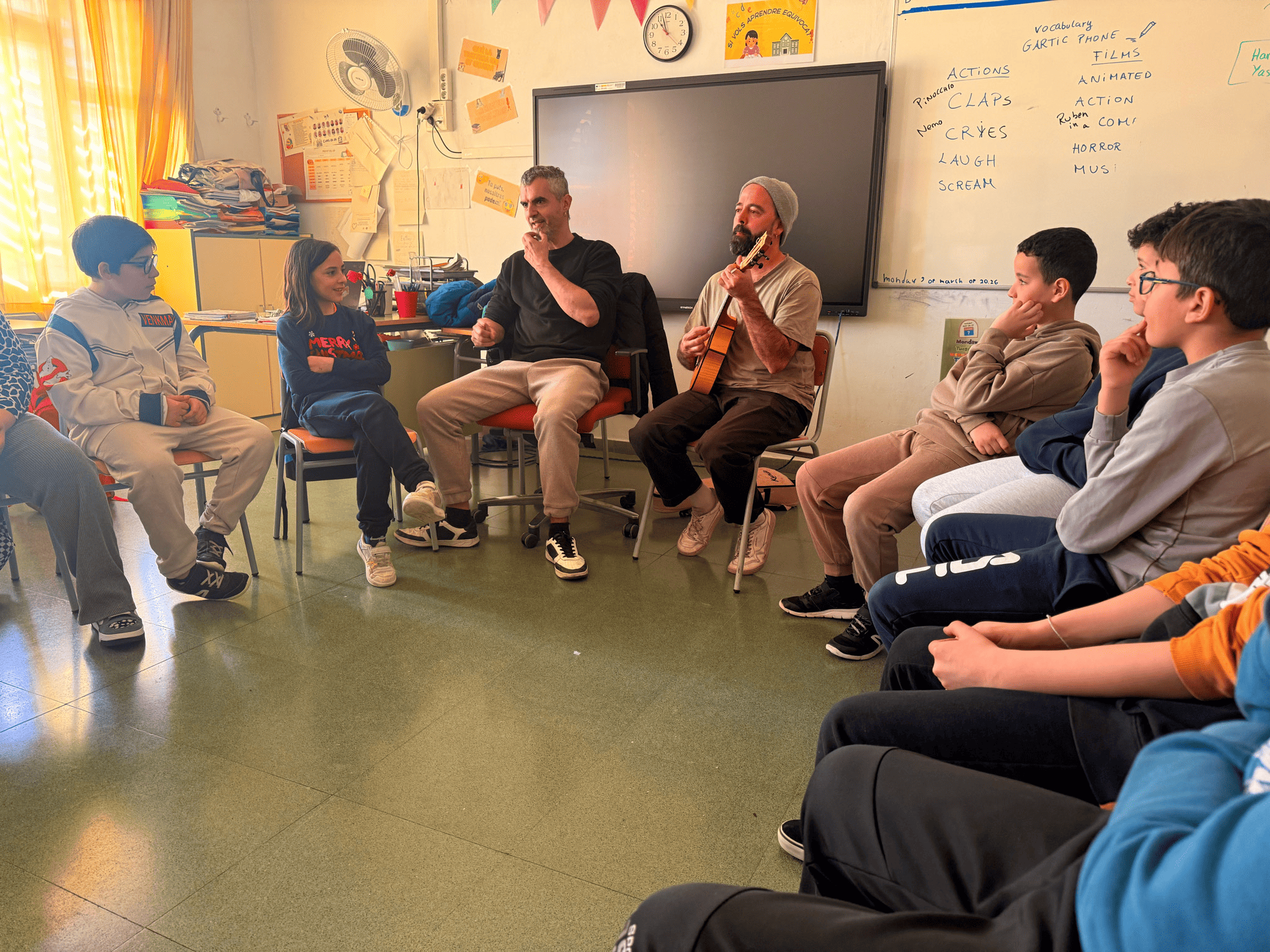 17/03/26El passat dijous 12 de març els alumnes de 5è van rebre una visita molt especial: el grup Xiula va venir a l’escola a fer-nos un taller. Durant la sessió ells van composar una cançó personalitzada per a cada grup, i vam poder veure de prop com neix una cançó: les idees, les paraules i la música prenent forma. Va ser un taller molt emocionant i inspirador, ple de música i complicitat. Sens dubte, una experiència molt bonica per recordar.