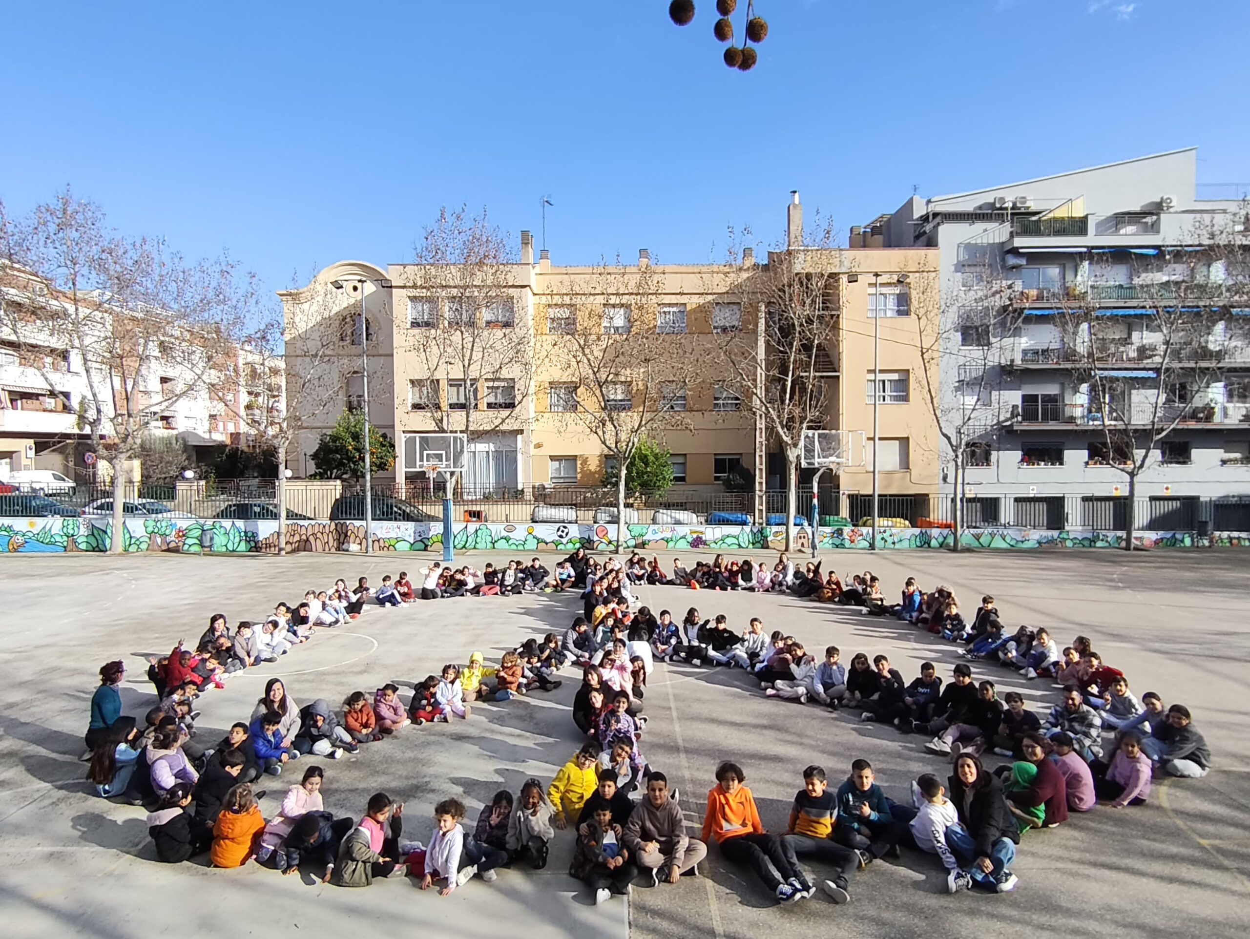 Avui, a l’escola, hem celebrat el dia de la Pau. S’han fet diverses activitats i, com a cloenda, hem sortit al pati a fer, entre tots i totes, el símbol de la pau. Aquest gest tan senzill, ha estat ple de significat.