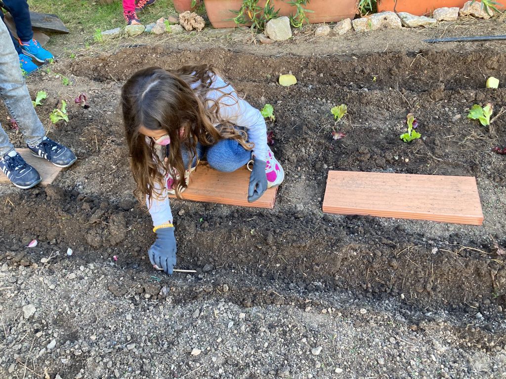 De moment, hem llaurat, airejat i preparat la terra, i hem sembrat les primeres llavors esperant que creixin el més ràpidament possible!! Segur que amb tot el nostre esforç ho aconseguirem!