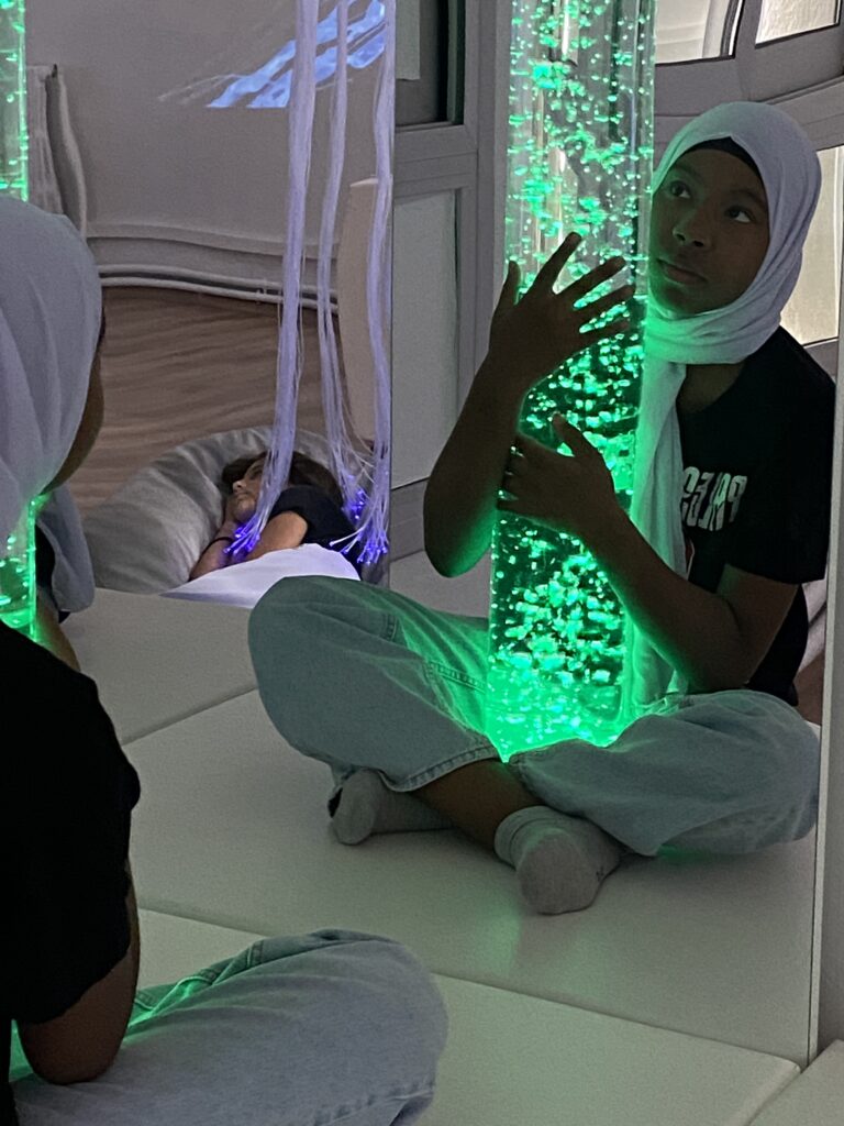 Per aquest motiu, dins del nostre projecte educatiu comptem amb la Sala Makandra, un espai pedagògic dissenyat per fomentar la calma, la relaxació i la connexió amb un mateix a través de les sessions basades en la filosofia Snoezelen