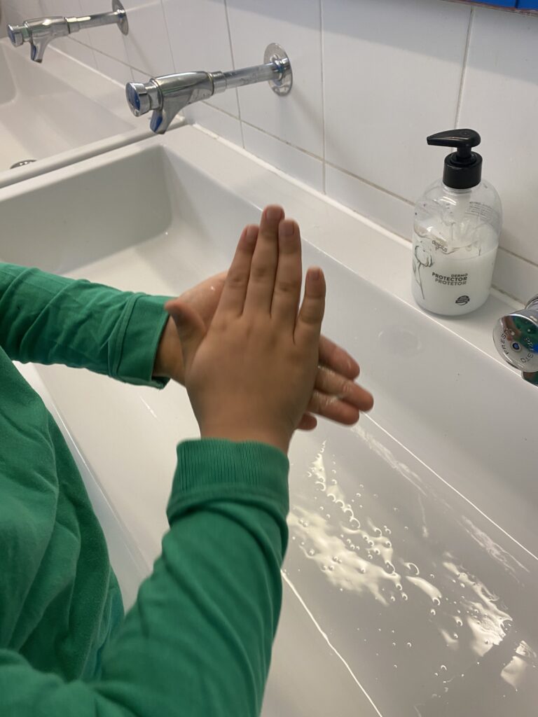 A continuació, fem un canvi de roba i ens netegem les mans i la cara, un petit ritual que simbolitza l’entrada a un espai de calma, atenció i sensibilitat que ens connecta d’una forma directa amb els sentits.