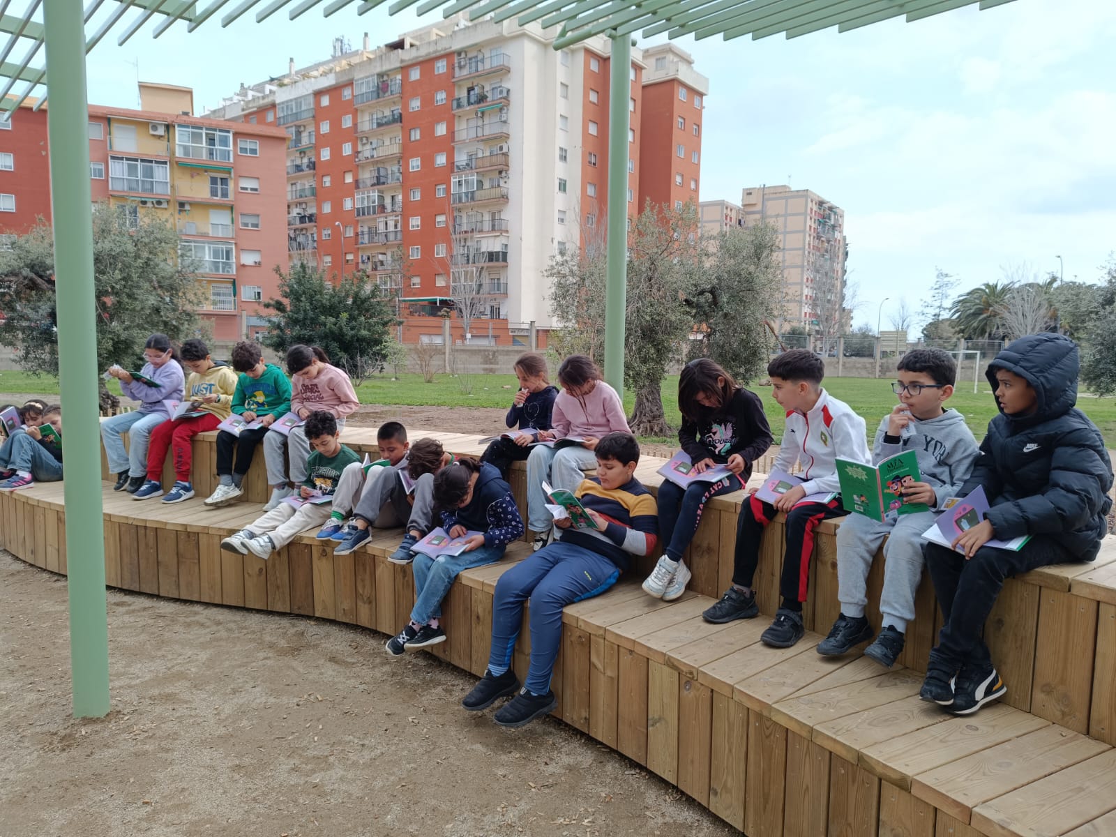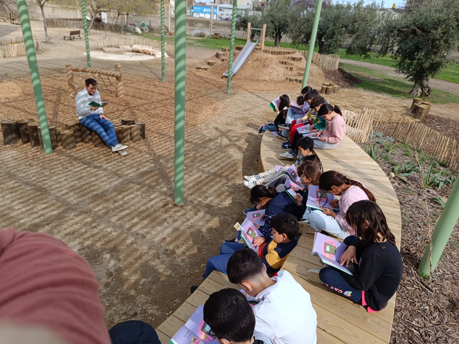 Un dels espais que s’utilitza sovint és la grada del pati, que s’ha convertit en un lloc ideal per fer lectures, petites explicacions a l’aire lliure i també les assemblees de l’aula. Aquest espai facilita que els infants es puguin reunir, parlar i compartir idees en un ambient tranquil i agradable.