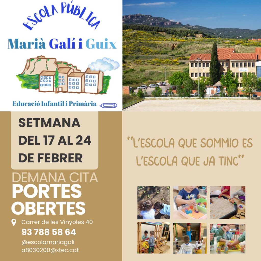 Jornades de Portes Obertes del 17 al 24 de febrer del 2026. Truca al 93 788 58 64 o escriu