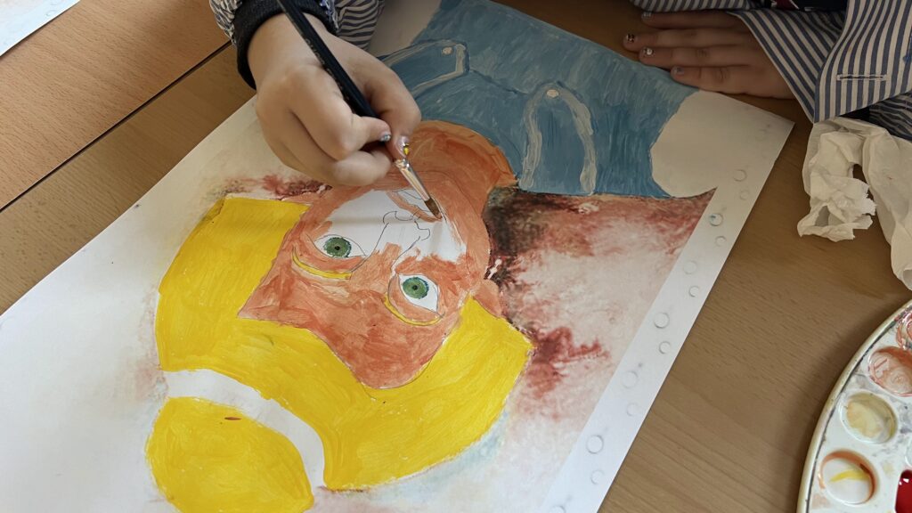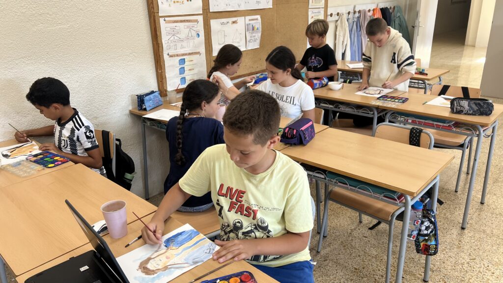 A la classe de cinquè treballem els colors matitzats amb témperes a través del quadre de ‘La vaileta’ de Joan