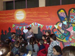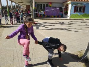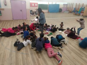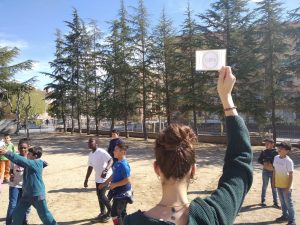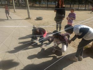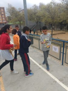 Un dia a la setmana, la Isa i la Lídia, ens ensenyen jocs nous, establim normes per als jocs amb pilota a la pista, fem propostes i reflexionem sobre temes… tot per afavorir la convivència dins i fora l’escola. A més, també participen al Consell de delegats i delegades que es fa mensualment i on es fa valoració del projecte i es presenten noves propostes; com en aquest darrer Consell de maig que ens han presentat el projecte Encaixa’t que es portarà a terme els mesos de juny, juliol i agost al barri.