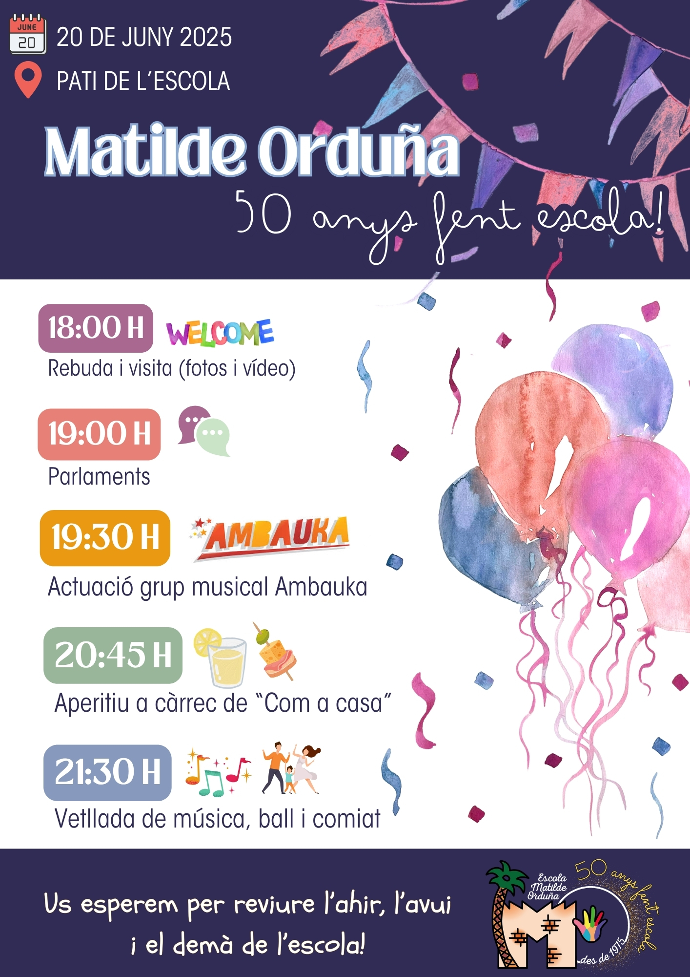 50è aniversari Feu un comentari / Per admin / 16 de maig de 2025 / General Portada / 50 anys fent escola, 50è aniversari Instagram de l’escola Formulari d’assistència