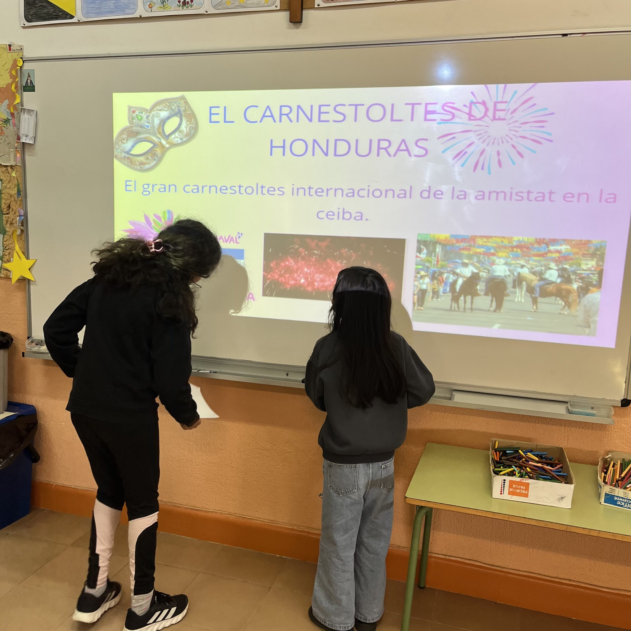 Aquestes setmanes hem dut a terme una activitat molt especial: la preparació de presentacions orals sobre les festes i tradicions del Carnestoltes als diferents països d’origen dels nens i nenes de l’aula. Per grups, els alumnes han preparat una petita exposició per explicar com se celebra aquesta festa al seu país: les disfresses, els menjars típics, les rues, les danses o altres costums populars.