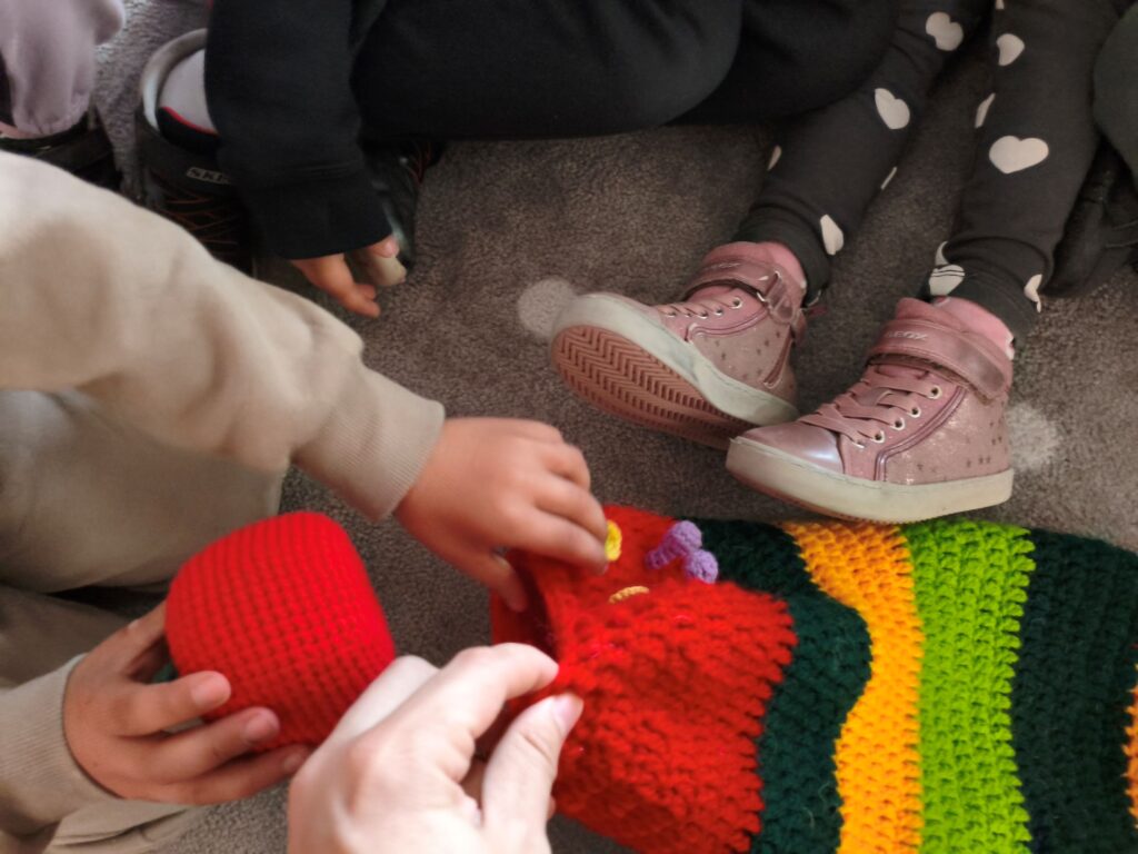 Hem donat de menjar a l’oruga per representar el conte tots junts.