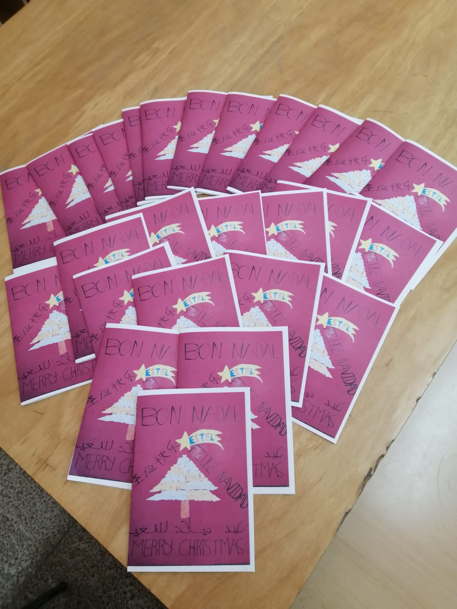 Perquè els nens/es d’acollida comencin a entendre les coses típiques de la nostra comunitat i puguin aprendre el vocabulari més habitual, hem treballat aquestes paraules i hem fet un dibuix en una targeta de felicitació.