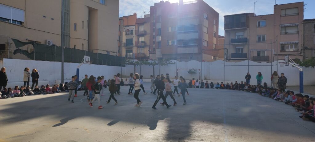 En arribar al matí a l’escola hem compartit una estona de danses al pati, on l’alumnat de 1r i 2n ens ha fet una mostra de danses tradicionals per engegar la jornada cultural de Sant Jordi.