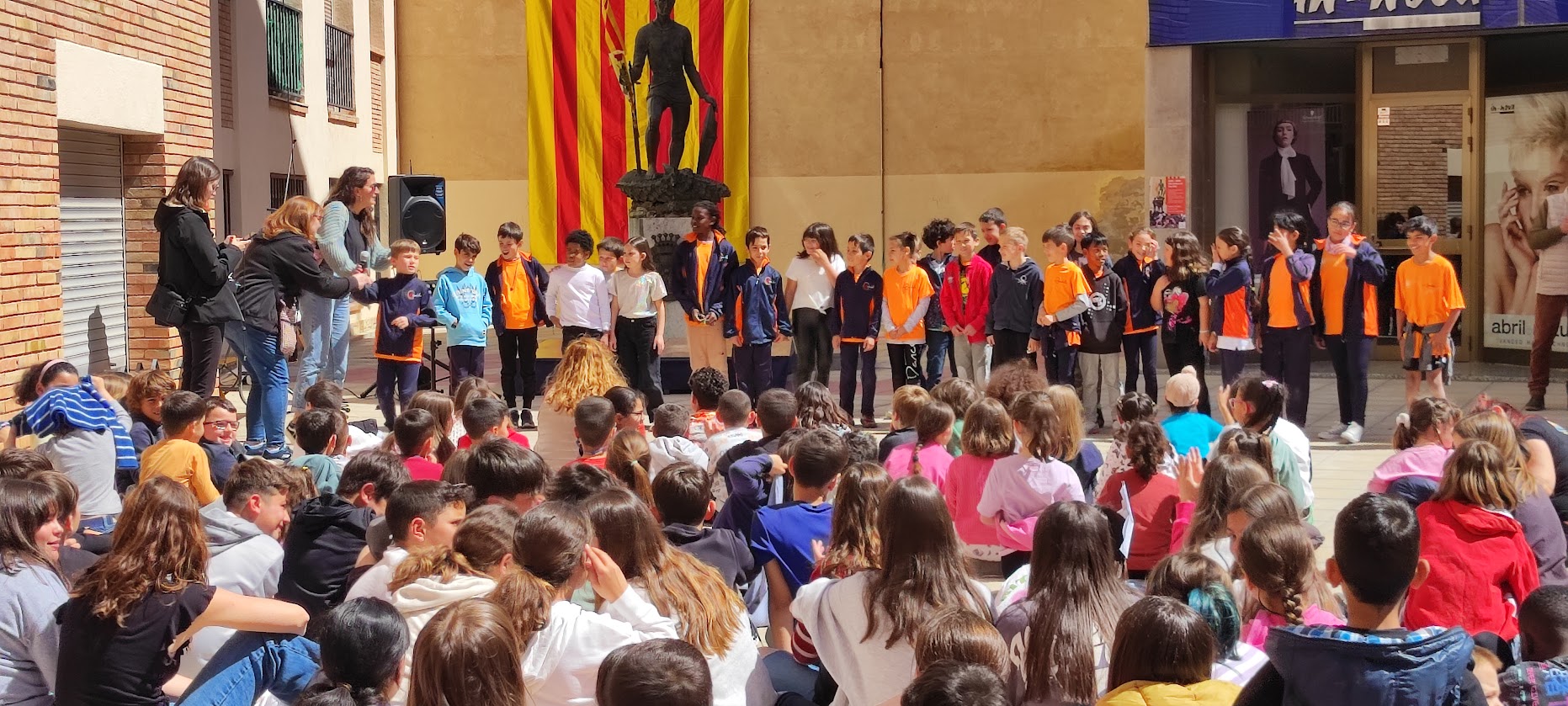 L’alumnat de 3r ha participat a la 10a edició de Lectura en veu alta d’Òmnium a la plaça Sant Jordi, on ens han regalat diversos poemes que han exposat per grups.