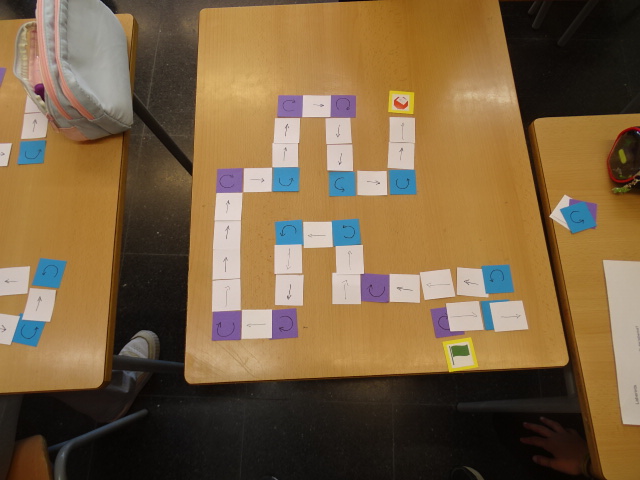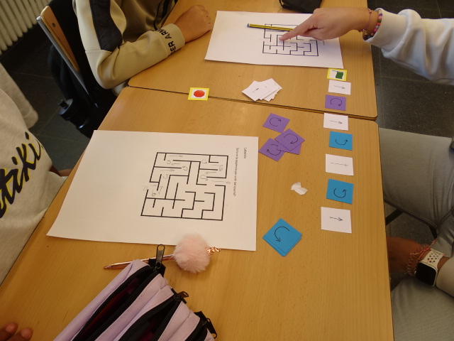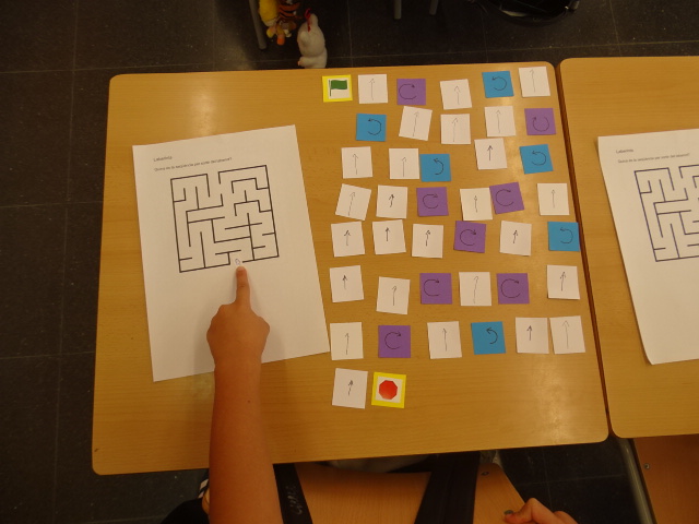 En aquesta sessió hem començat treballant el pensament computacional a partir de la recerca de “bugs” o errors de programació. Els nens i nenes han hagut de sortir d’un laberint utilitzant targetes de direcció i de gir per planificar els moviments. Per acabar, han posat en pràctica l’esperit crític i la capacitat d’anàlisi revisant tres laberints ja resolts i trobant-hi els errors en les seqüències.