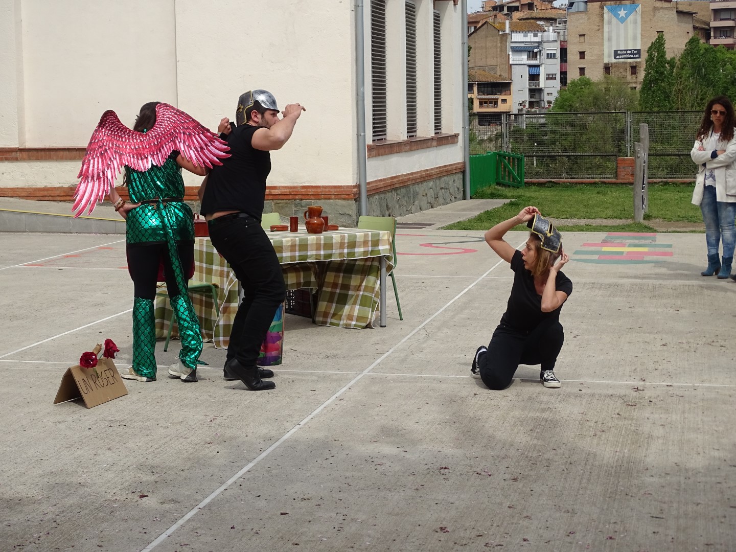 A la tarda hem celebrat els jocs florals i hem gaudit d’una reinterpretació de la llegenda de Sant Jordi.
