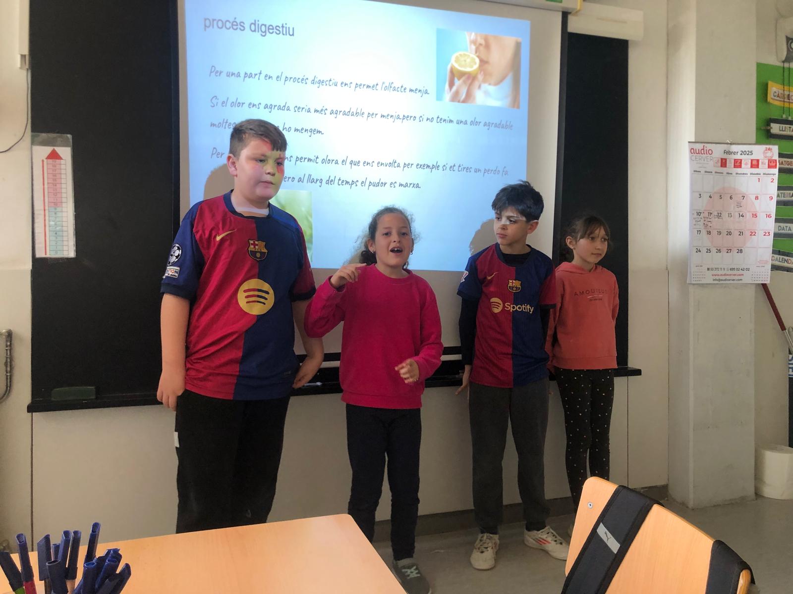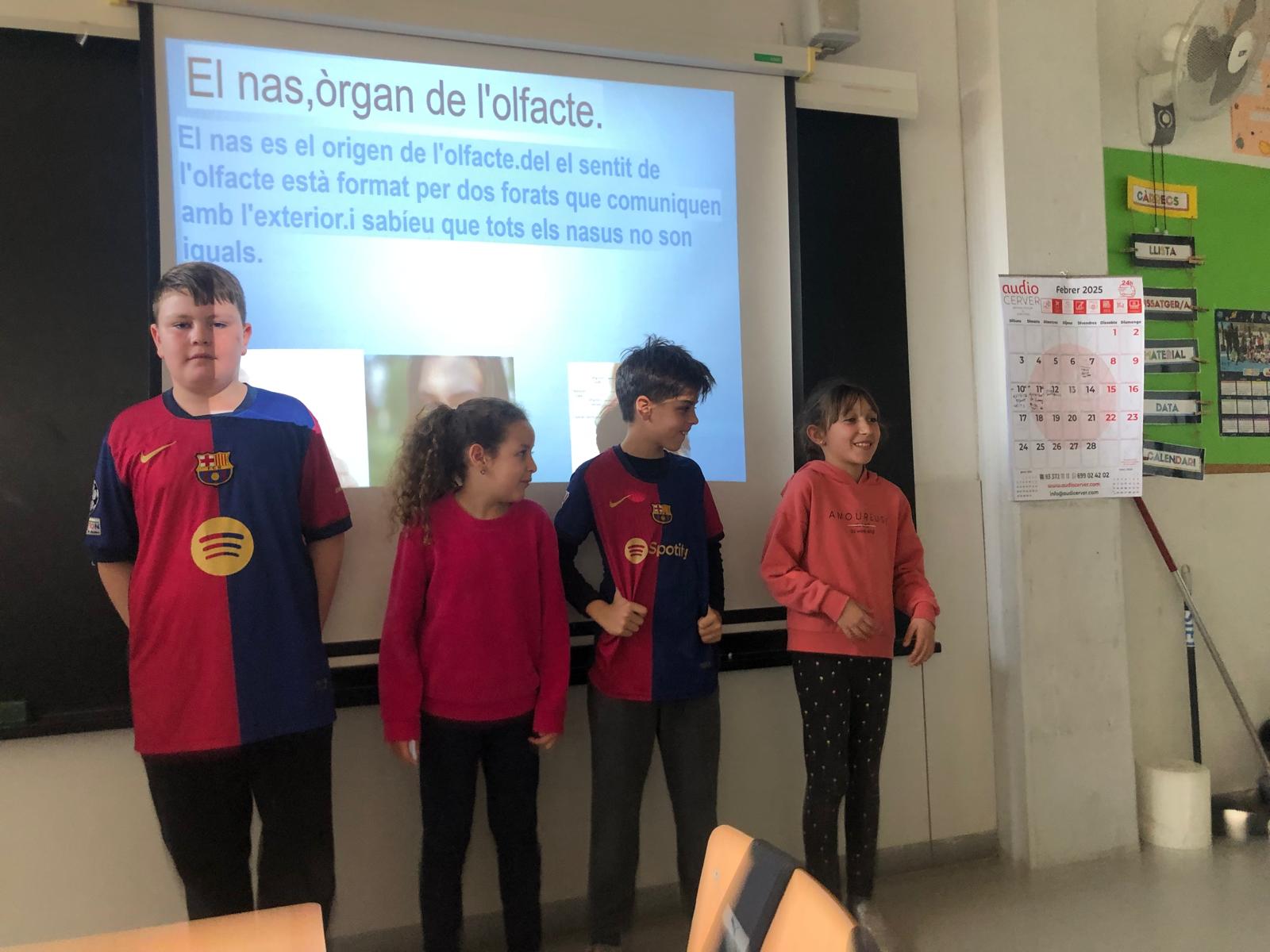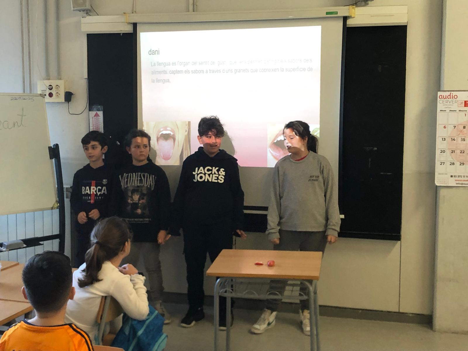 Els alumnes de 4t A i 4t B han realitzat unes presentacions molt interessants sobre els cinc sentits: gust, oïda, olfacte, tacte i vista, i sobr e l’espai (que er a el projecte de la classe). Les presentacions es van organitzar per grups, amb un total de 5 grups per classe, on cada grup es va encarregar de preparar un PowerPoint per exposar de manera clara i dinàmica el tema assignat.