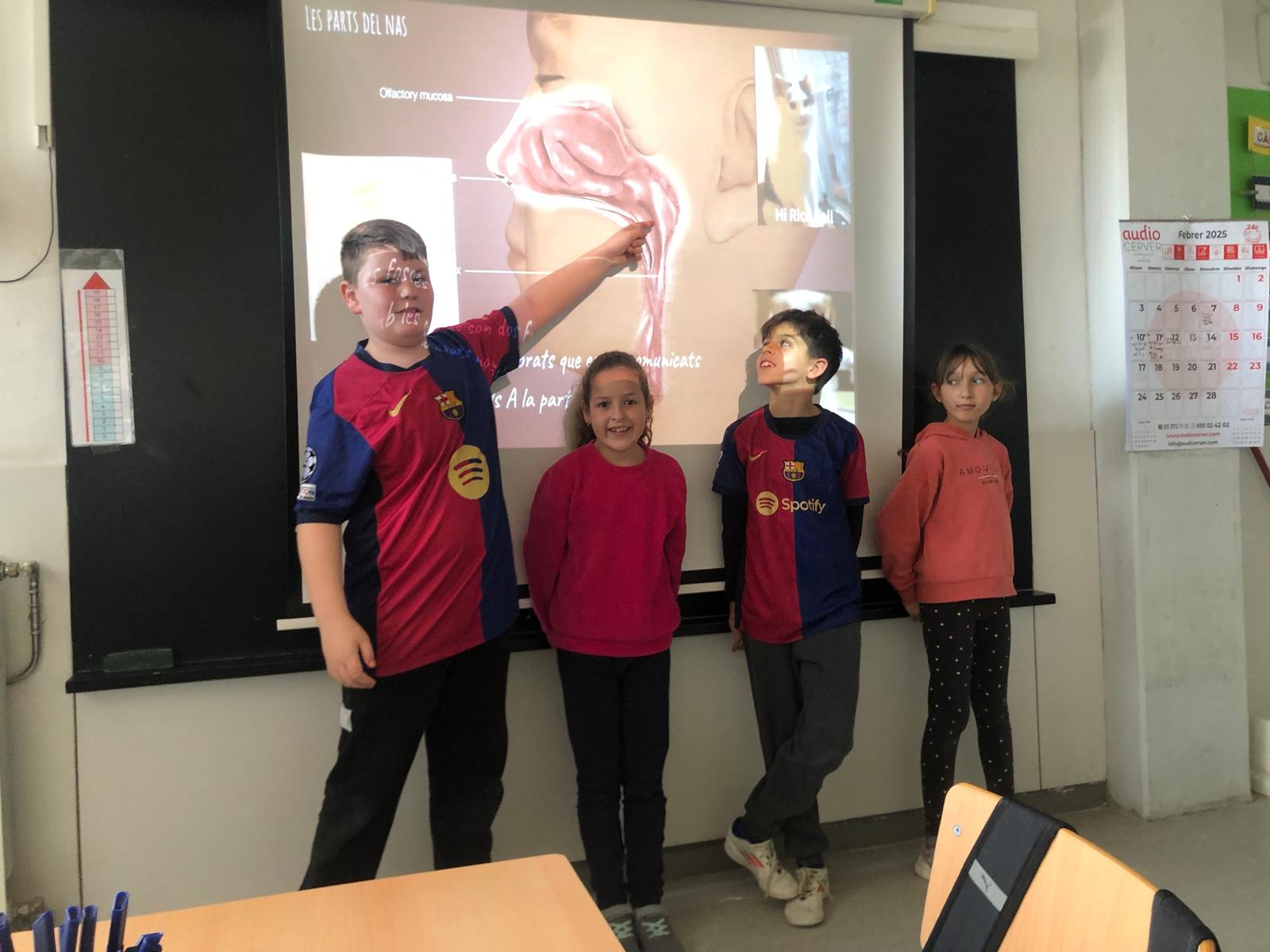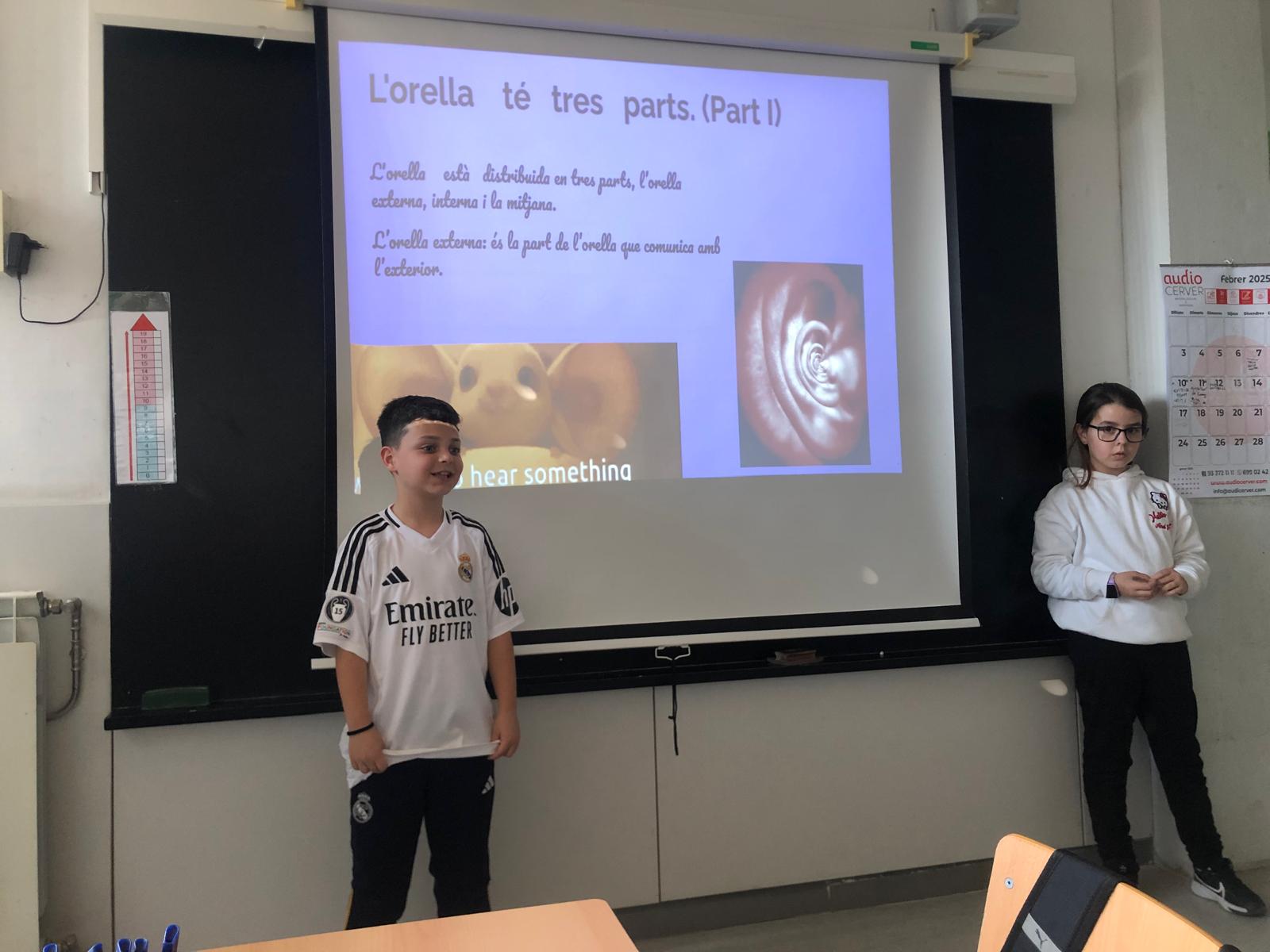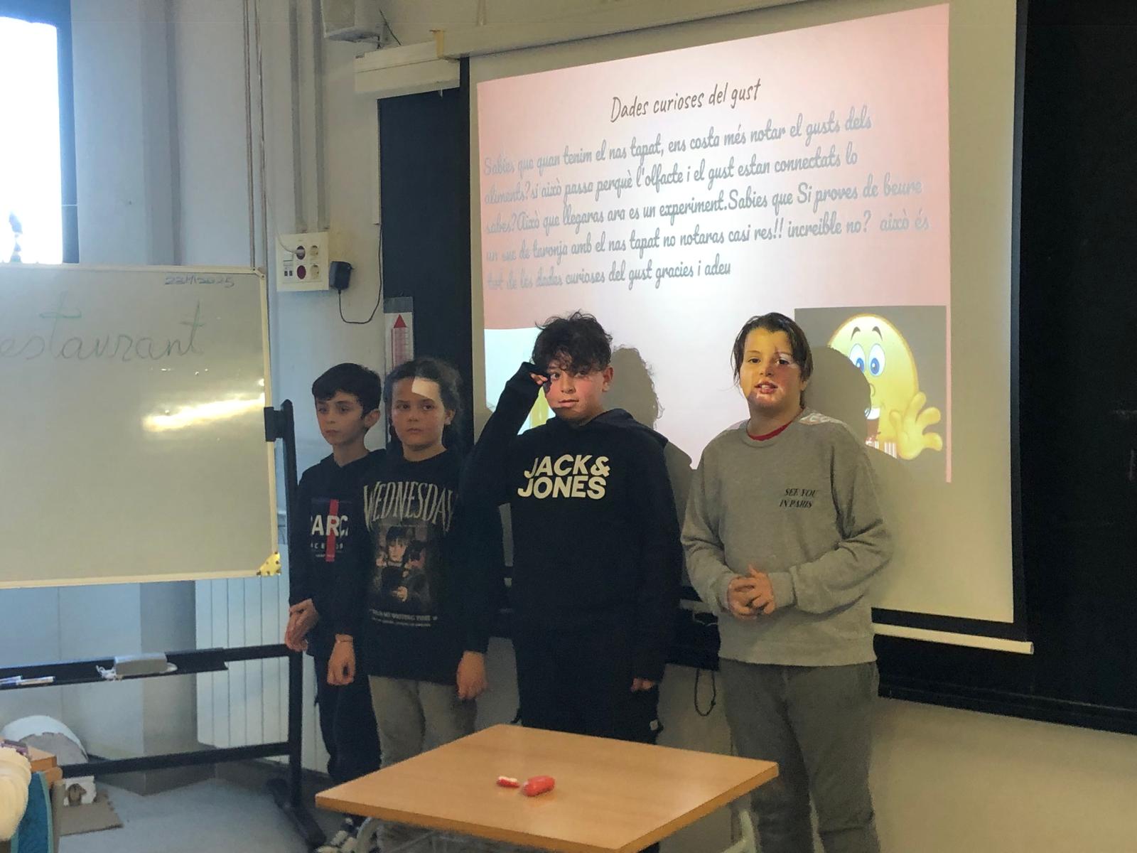 Els alumnes de 4t A i 4t B han realitzat unes presentacions molt interessants sobre els cinc sentits: gust, oïda, olfacte, tacte i vista, i sobr e l’espai (que er a el projecte de la classe). Les presentacions es van organitzar per grups, amb un total de 5 grups per classe, on cada grup es va encarregar de preparar un PowerPoint per exposar de manera clara i dinàmica el tema assignat.