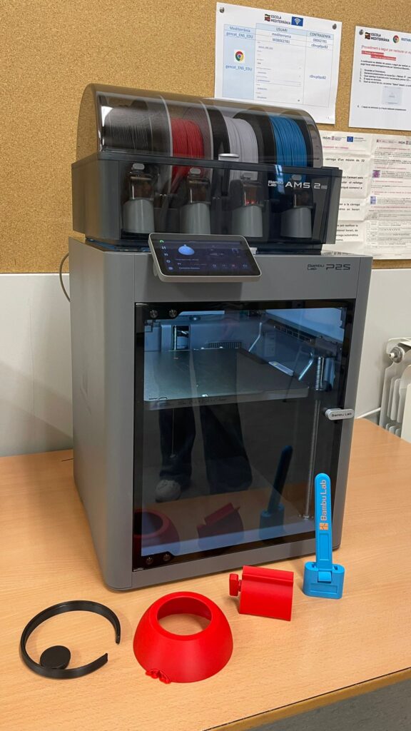 La Bambu Lab P2S és una impressora 3D ràpida i molt precisa que permet transformar dissenys digitals en objectes reals. A primària, aquesta tecnologia s’utilitzarà per crear prototips, figures geomètriques, peces per a projectes interdisciplinaris o materials manipulatius per a l’aula. L’alumnat podrà entendre millor conceptes matemàtics, científics i tecnològics a partir de l’experimentació directa.