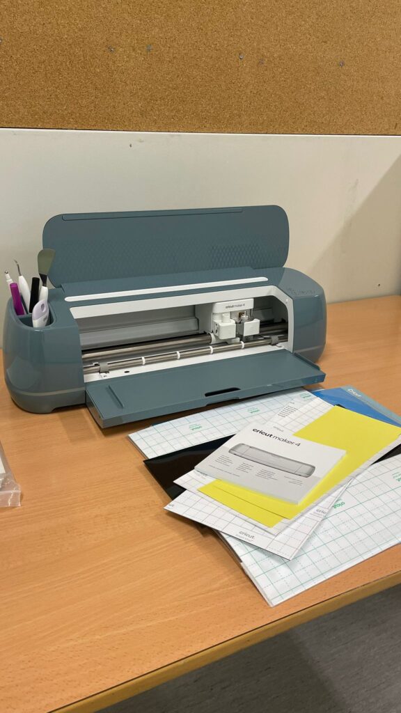 La Cricut Maker 4 és una talladora de vinil molt versàtil que permet crear adhesius, plantilles, cartells, elements decoratius i materials personalitzats per a projectes escolars. És una eina especialment útil per treballar la creativitat, el disseny gràfic i l’expressió artística, així com per donar suport a projectes de llengua i treballs col·laboratius.