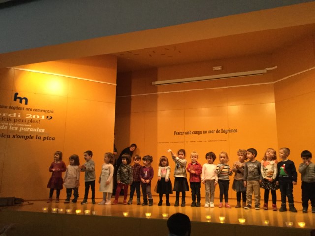 El dijous 19 de desembre l’escola els Pins va anar a l’institut Narcís Monturiol a fer el concert de Nadal. Van actuar tots el cursos de l’escola. P3, P4 i P5 cantaven una cançó, i els de primària alguns van fer una dansa i uns altres van arribar a fer fins a tres cançons, fins i tot en anglès. Per acabar van cantar juntament amb les famílies la cançó del 25 de desembre.