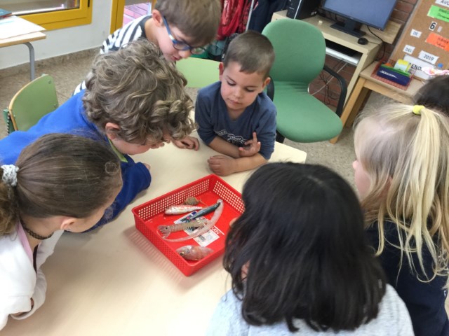 Després d’observar i parlar sobre què menjaven els Pirates, hem pogut comprovar que un dels millors mètodes de conservació és utilitzar la Sal per evitar que l’aliment es podreixi. També, gràcies al pare d’una alumna que és peixater, hem tingut la sort de poder veure de prop diferents animals marins. Tot i la forta olor, a la majora ens ha encantat!!
