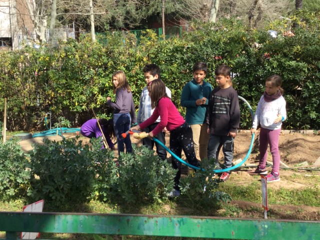 Avui hem anat al nostre hort i estem una mica preocupats i preocupades perquè fa molts dies que no plou i les nostres faves estan creixent molt a poc a poc!