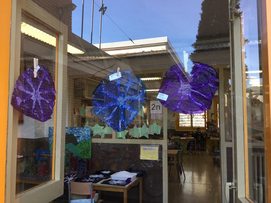 Focs de neu. 2n admin03/02/21 A la nostra classe hem treballat els flocs de neu. HEM POGUT OBSERVAR: Que els flocs de neu estan formats per molècules d’aigua (H2O) Tots els flocs de neu tenen sis braços. Tots tenen diferents formes. I així els hem construït amb pega i sal.