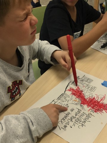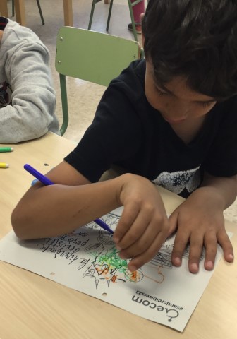 El moviment ECOM ( Esborrem barreres. Creem oportunitats) ens va convidar a participar de la Campanya “Sant Jordi Divers 23” pintant un dibuix molt bonic d’en Joan Turu, un dibuix inspirat en la Diada de Sant Jordi. Però no podíem fer servir les mans.