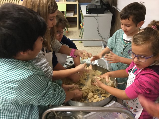 La setmana passada vam fer panellets a la classe.
