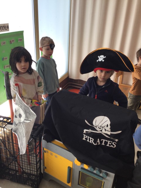 A la classe de les abelles ens apassiona el món dels pirates. Per això, hem volgut celebrar el seu dia. Hem agafat les nostres millors disfresses i hem jugat a ser-ho. Hem pintat banderes amb una calavera, hem creat un vaixell i també hem trobat un tresor!