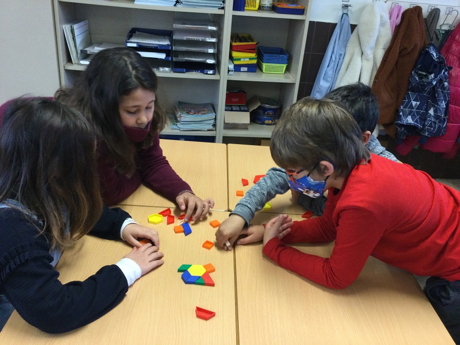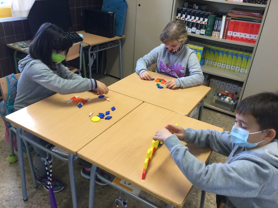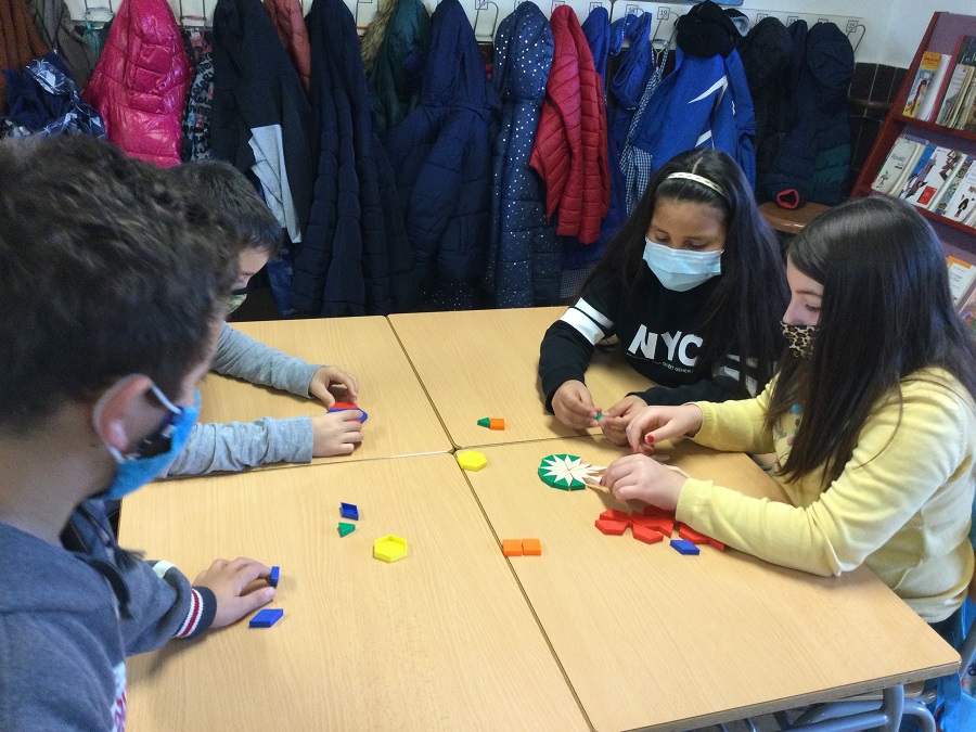 Mosaics amb peces geomètriques. 3r admin04/02/21 Avui a matemàtiques hem fet mosaics amb peces geomètriques i ens ho hem passat molt bé. Han sortit formes molt boniques.