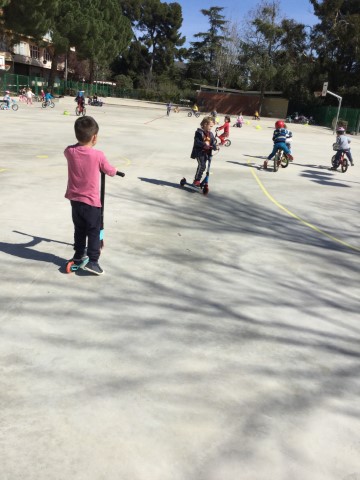 Aquesta setmana hem gaudit d’un dia ben diferent. Hem pujat a la pista per gaudir del joc amb els vehicles que hem portat de casa. Patins, patinets i bicis s’han fet seu el pati i el sol ens ha acompanyat tot el matí. Us compartim algunes imatges per a que veieu quin goig d’activitat.