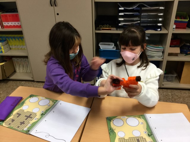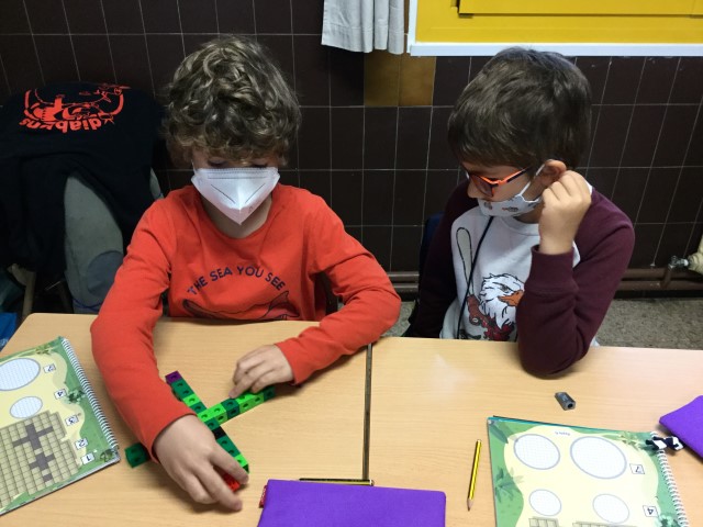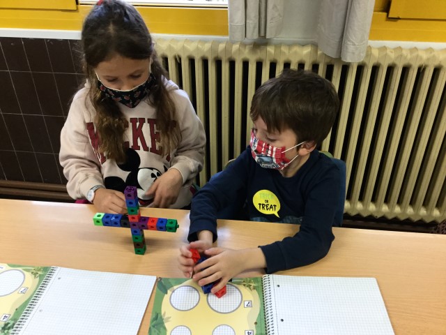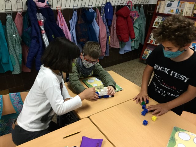 A matemàtiques estem treballant què és seguir un patró. Primer quan hem sentit la paraula no sabíem què era però quan hem pogut practicar manipulant els cubets de seguida ho hem entès.