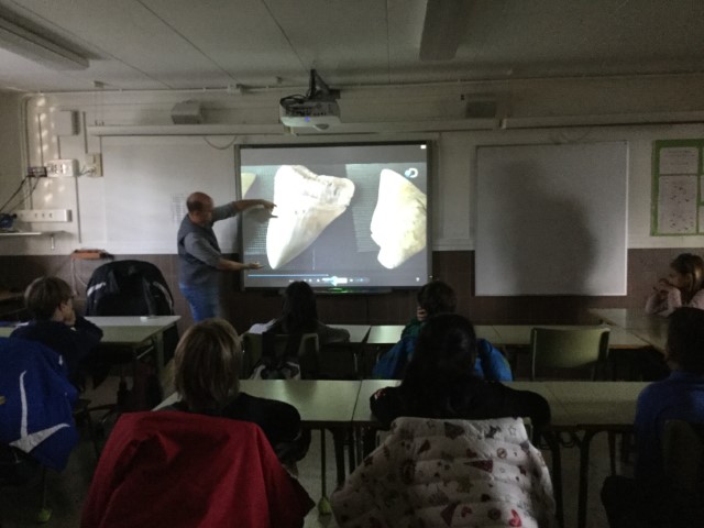 Taller del Megalodon admin16/11/18 A les 9:00 del matí el Jordi ens ha fet un taller del Megalodon. Primer ens ha explicat coses dels taurons, peixos, Megalodon i plàncton. Després hem fet un joc sobre l’alimentació. A continuació hem anat a la classe a veure un vídeo del Megalodon.