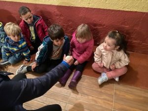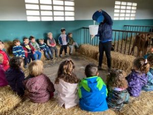 Seguidament vam veure a la Truja i després vam visitar a les gallines i conills. Els vam donar enciam per menjar i els vam acaronar amb suavitat. A continuació vam veure a les vaques, que els hi agradava molt el blat de moro. Vam conèixer també a la vaca Tomassa i vam tocar la seva llet, que estava molt calenta. També vam veure cabretes i els vam donar pa sec. Al costat hi havia un xai i li vam donar el biberó. A més a més vam conèixer també als vedells a qui també els vam preparar un biberó molt gran!