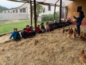 Només arribar a la granja vam esmorçar. Tot seguit, ens esperava la Clara per acompanyar-nos a visitar els animals. Els primers que vam veure van ser els ànecs i els pollets. A l’incubadora hi havia els ous i els pollets petits i just vam veure com en sortia un de l’ou!
