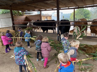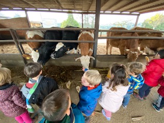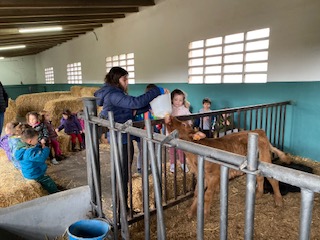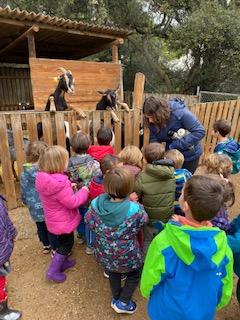 Seguidament vam veure a la Truja i després vam visitar a les gallines i conills. Els vam donar enciam per menjar i els vam acaronar amb suavitat. A continuació vam veure a les vaques, que els hi agradava molt el blat de moro. Vam conèixer també a la vaca Tomassa i vam tocar la seva llet, que estava molt calenta. També vam veure cabretes i els vam donar pa sec. Al costat hi havia un xai i li vam donar el biberó. A més a més vam conèixer també als vedells a qui també els vam preparar un biberó molt gran!