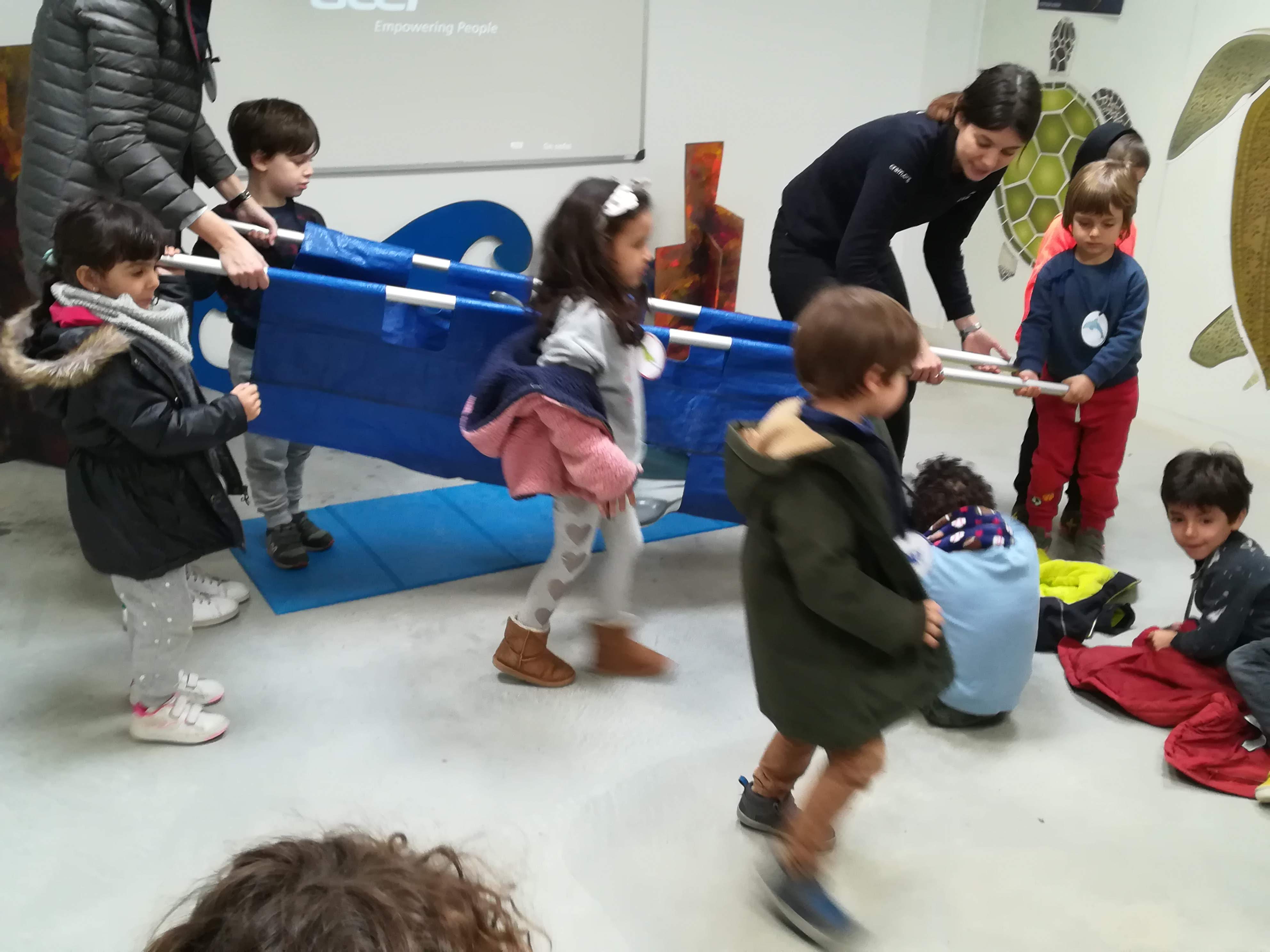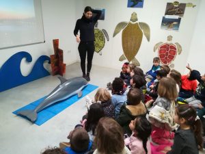 El 26 de març les nenes i nens de P4 hem anat a visitar el CRAM, el Centre de Recuperació d’Animals Marins. El primer que ens ha sorprès han estat els avions que ens han sobrevolat de tan a prop. I és que el CRAM està al costat de l’aeroport del Prat, en els espais naturals del delta del Llobregat.