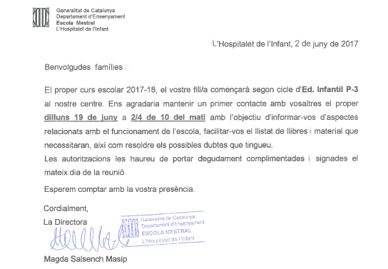 REUNIÓ INFORMATIVA FAMÍLIES P3 CURS 2017-18