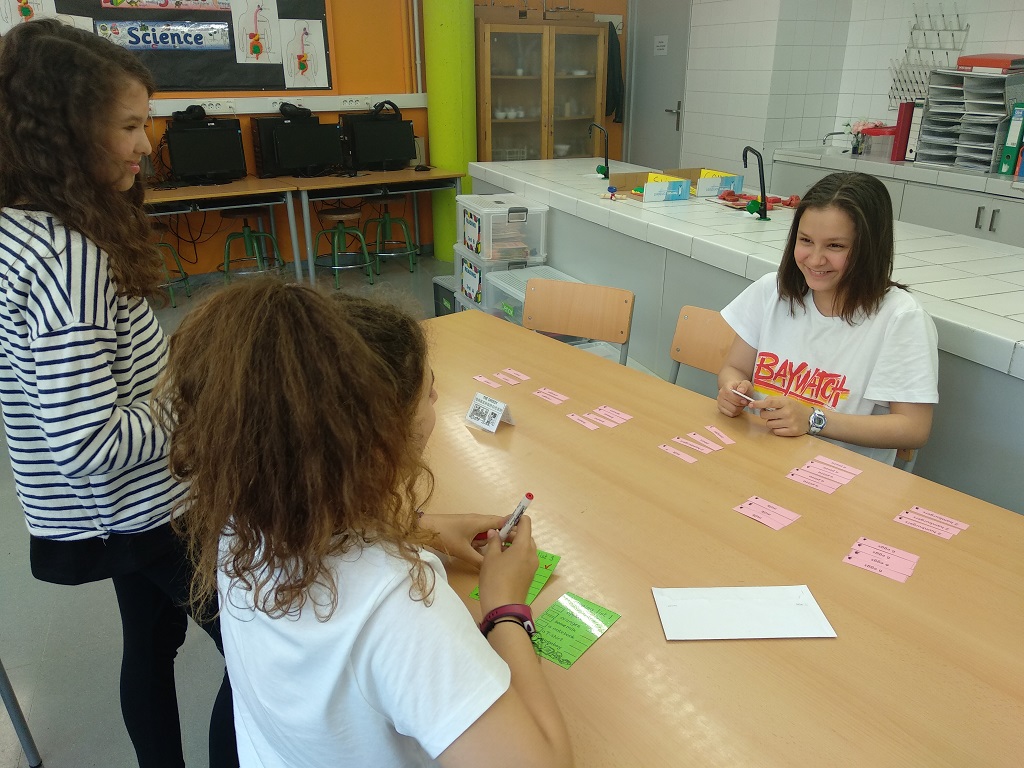 The class has turned into a big market to practise English. Some students were the shop assistants, while other ones were the costumers: